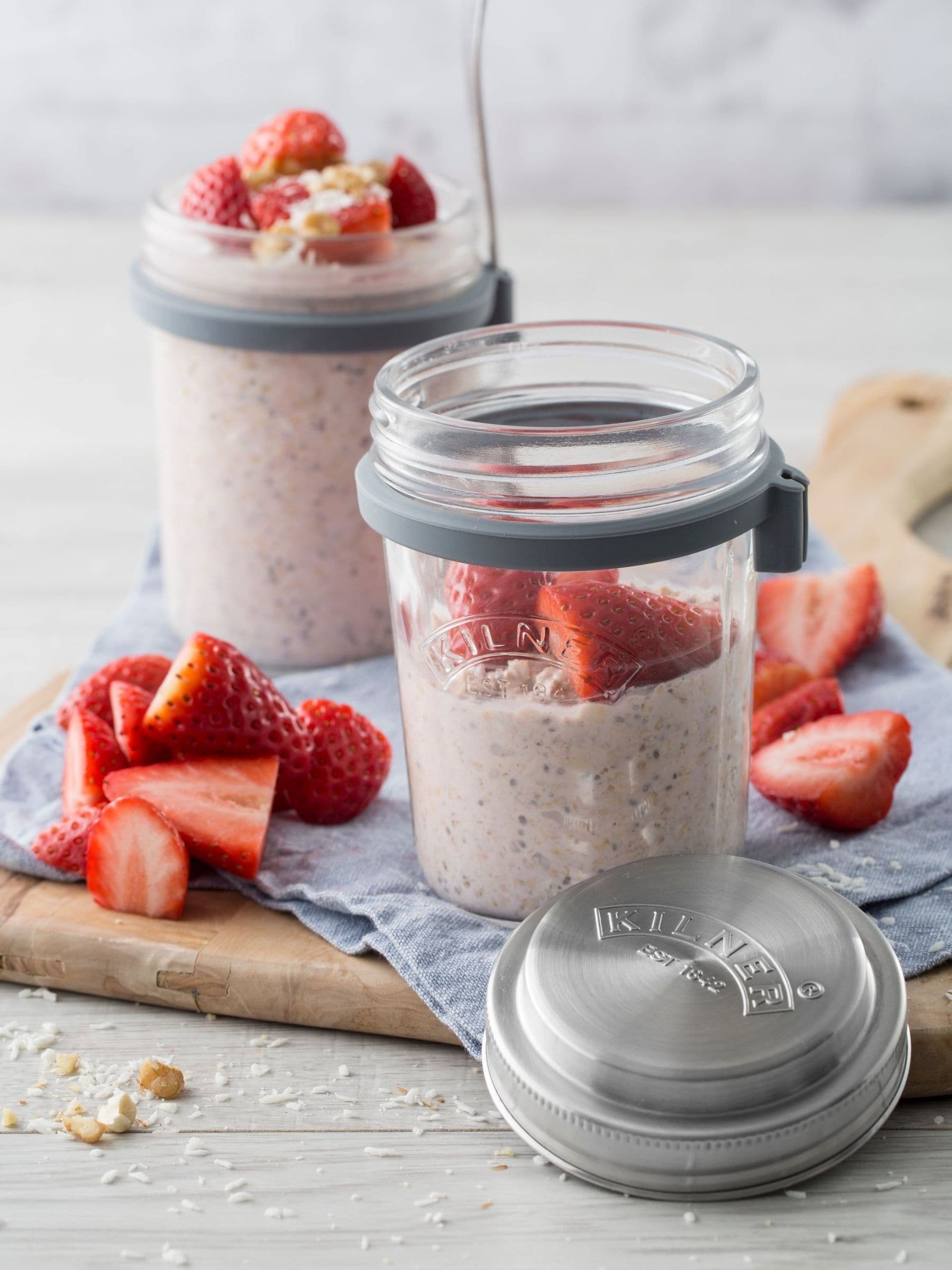 The Kilner® 0.35 Litre Breakfast Jars Set provides a way to store and enjoy foods such as yogurt, cereal, and overnight oats, whether at home or on-the-go. Included in the set is a Kilner® 0.35 Litre Jar with a wide opening, making it easy to eat from.