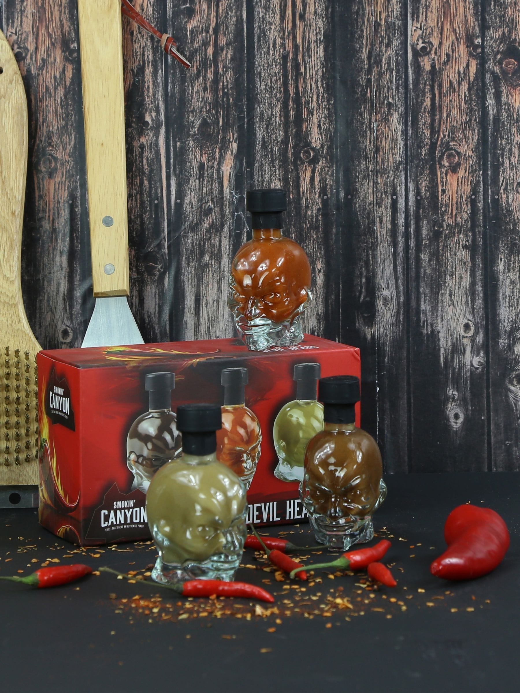 Kimm & Miller Hot Sauce Gift Set - Smokin Canyon Chilli Devil Trio with Green Jalapeno, Ghost & Red Jalapeno Sauce (3 x 45ml) - Great Novelty Gifts for Men, Women & Teens. This fiery trio of hot sauces is the perfect gift for chilli lovers looking to add some heat to their meals. Fun Chilli Gifts for Men & Women: This hot sauce set is an ideal novelty gift for men, women, and anyone who enjoys the thrill of trying different spicy flavours, featuring three devilishly hot chilli sauces to sample. Devilishly Hot Chilli Sauce Gift Set: The trio includes hot green jalapeno sauce (45ml), extra hot ghost chilli sauce (45ml), and an extremely hot ghost and red jalapeno sauce (45ml), offering a range of heat levels for the daring. Novelty Glass Devil Bottles: Each sauce is packed in a unique devil-shaped glass bottle, holding 45ml of fiery flavour—perfect for adding some sizzle to BBQ meats or using as a bold dip for crisps. Are you ready to face the heat? Chilli Sauce Challenge: Invite your friends for a fun and spicy challenge to see who can conquer the devils in this ultimate test of heat tolerance. At Kimm and Miller, it's our mission to create unique, memorable gifts for all of the UK and beyond. We have been busy designing, making and supplying our gift sets since 2007. In fact, our innovative, design-led approach has helped us to become the UK’s market leader, winning us lots of shiny awards over the last decade. Our team are the very best at what they do, ensuring that everything runs as smoothly as a well-wrapped gift. Size: 0.