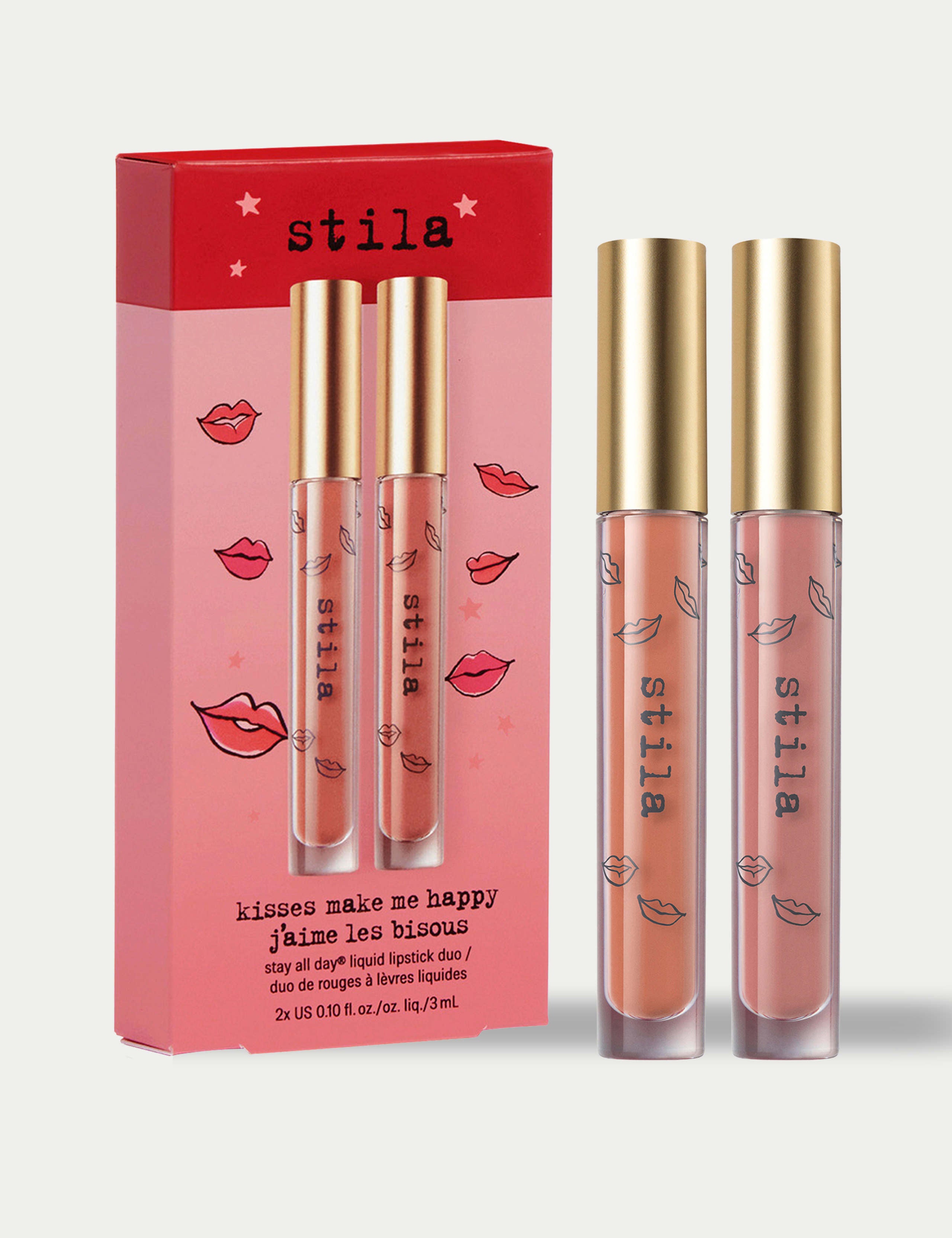 Read MoreThis duo set features two full size 3ml liquid lipsticks in Petal & Sugar Peach shades. Budge-proof, transfer-proof and waterproof, Stila’s cult favourite Stay All Day® Liquid Lipstick is now better than ever, with a ‘matte-meets-comfy’ formula that’s infused with vitamin E and a nourishing complex of plant-based ingredients like jojoba oil, avocado oil and pomegranate flower extract. They have a creamy, lip-enhancing formula for smoother, fuller-looking lips, that provides a rich, pigmented mauve pink colour for the Petal shade and a peachy nude for the Sugar Peach shade, lasting up to 12 hours with no bleeding, feathering or smudging. The new enhanced precision applicator also makes lip contouring, defining and filling easier than ever before. CAUTION: Flammable until dry. Do not use near flame, or heat.