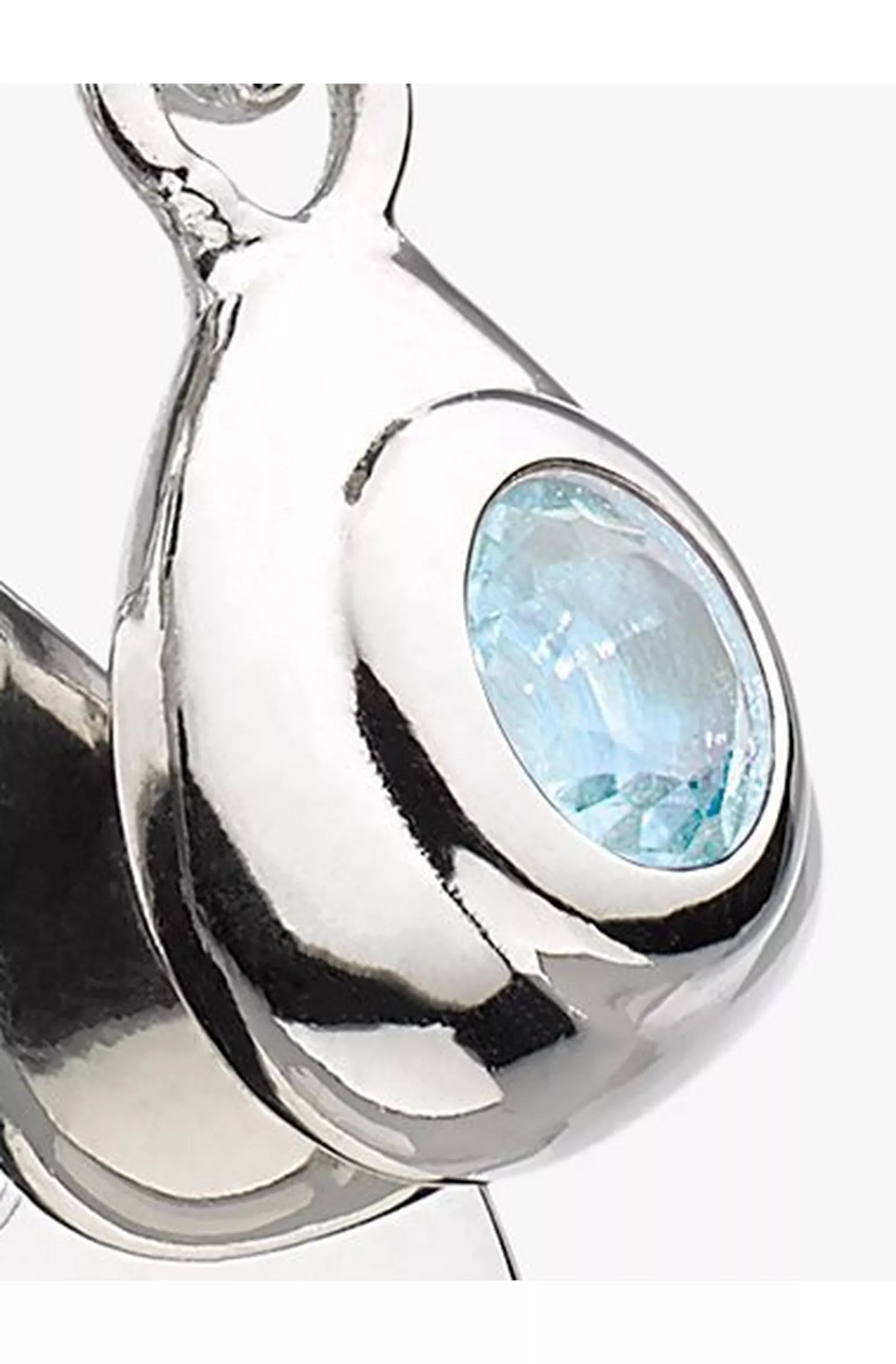 An elegant facet teardrop pendant, complete with enhanced edges hangs on a delicate sterling silver chain, accompanied by a smaller pendant with round-cut birthstone in the centre for a unique touch. The necklace can accommodate 2 characters maximum.
