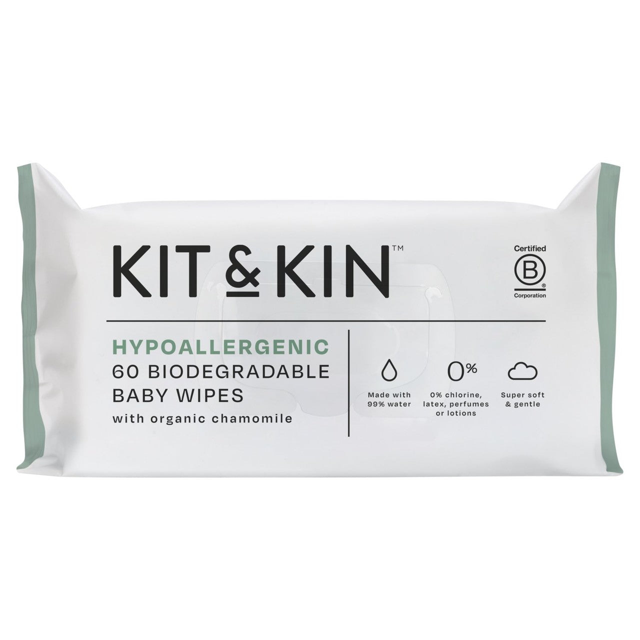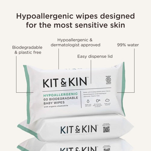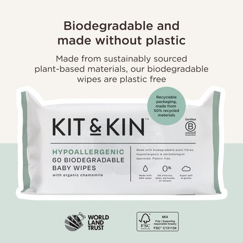 These Kit & Kin wipes are crafted using a gentle formulation based on 99% water content. They feature 100% plant-based towels, ensuring the product is entirely free from plastic. New packaging and design features enhance user convenience and environmental consideration during baby changes.