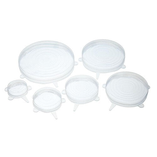 Move away from frustrating, sticky plastic wrap with this versatile set of six stretch silicone lids from KitchenCraft. These durable food covers are designed to securely seal containers, helping to keep your leftovers fresh longer. They serve as excellent replacements for cling film when covering bowls or protecting cut produce.