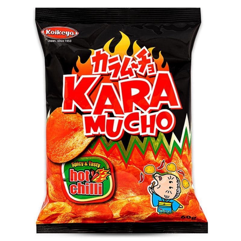 Experience the fiery flavour of Koikeya Kara Mucho Hot Chilli Potato Crisps, a bold snack perfect for spice lovers. These crunchy crisps offer a generous coating of hot chili flavour, delivering a satisfying and intense taste sensation. A delicious treat for those seeking an exciting snacking adventure.