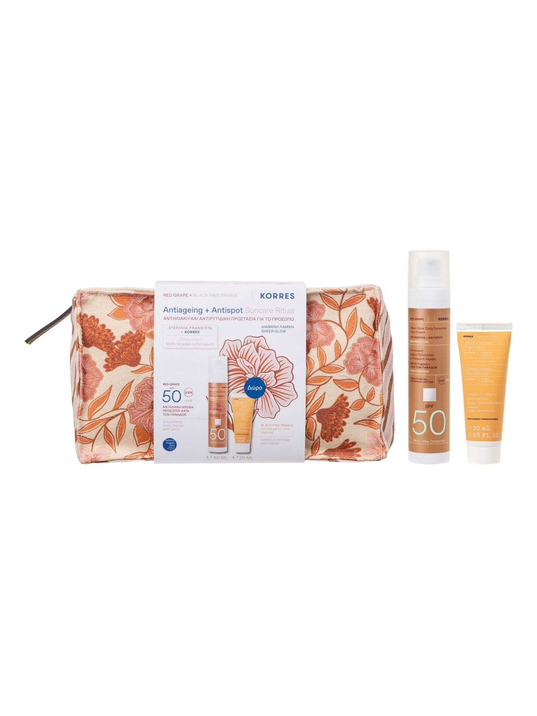 Red Grape Sheer Glow Daily Sunscreen Face Cream SPF 50 50ml + Black Pine Primus Wrinkle Defying Day Cream 20ml + Limited Edition Stefania Frangista pouch
