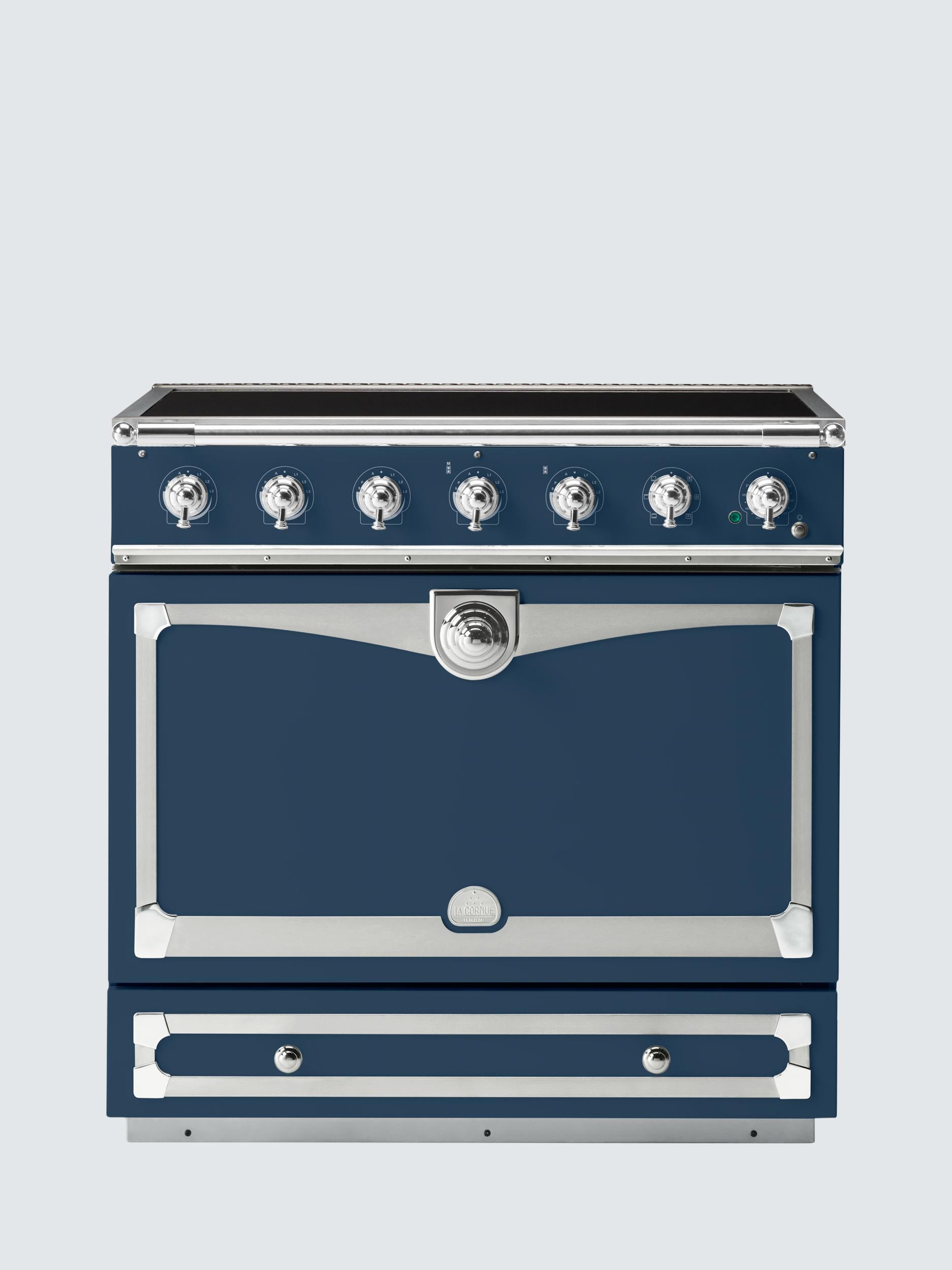 La Cornue Cornufe Albertine 90Cm Electric Range Cooker in Winter Sky offers superior culinary performance. This heritage appliance features a large, versatile oven and a responsive induction hob for excellent results in every session.