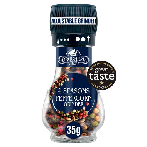 This La Drogheria mill combines black, white, green, and pink peppercorns for a complex flavour profile. This expertly crafted blend delivers rich aromatics to your culinary creations. It features a balance of heat and subtle fruity notes in every seasoning.