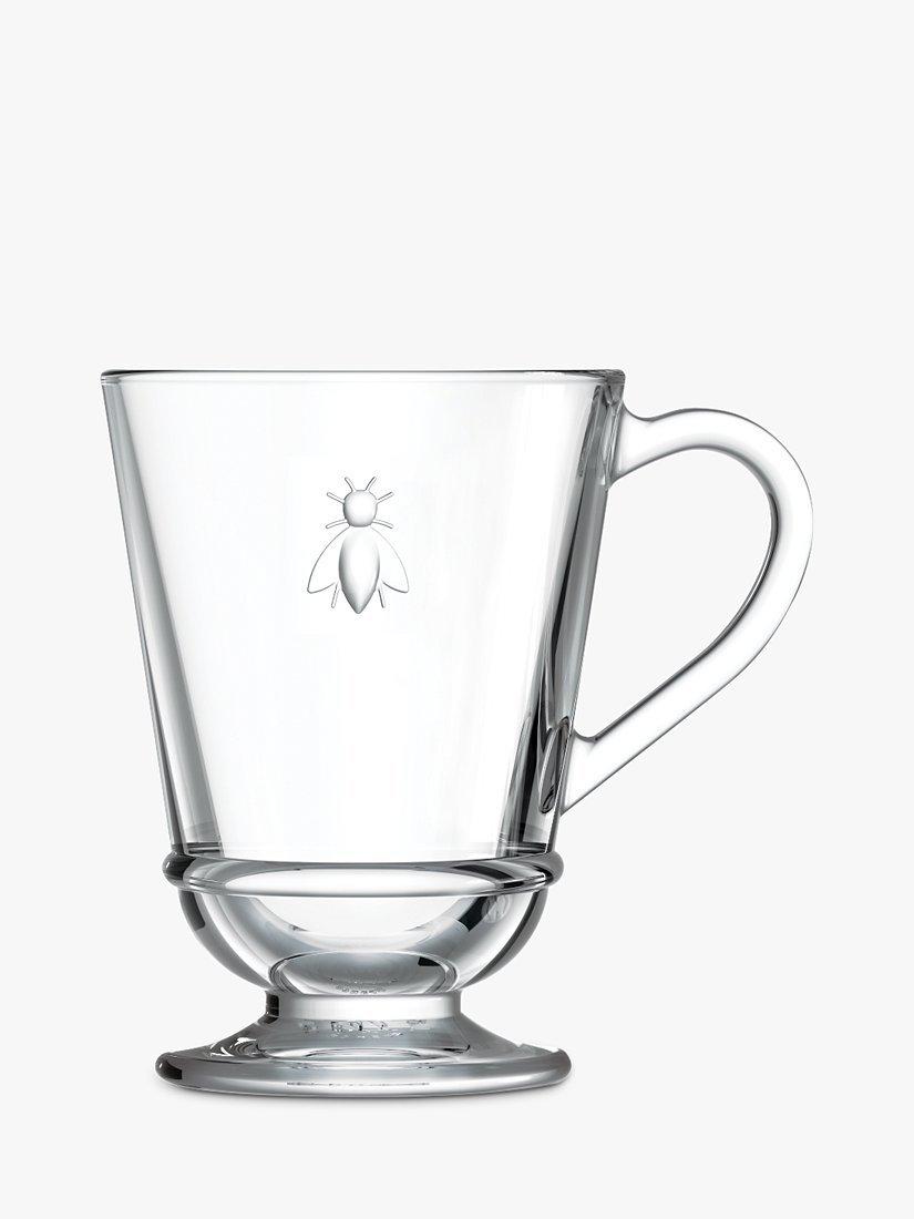 5/5 A set of six tactile La Rochère coffee mugs with a three-dimensional bee design raised from the glass surface. Each mug has a weighty footed base and an attractive tapered shape. The glass is dishwasher safe for easy cleaning.