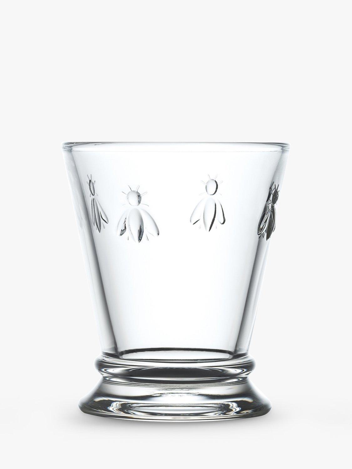 A set of six tactile La Rochère mini tumblers with a three-dimensional bee design raised from the glass surface. Each glass has a weighty base and an attractive tapered shape for enjoying soft drinks or something stronger. The glass is dishwasher safe for easy cleaning.