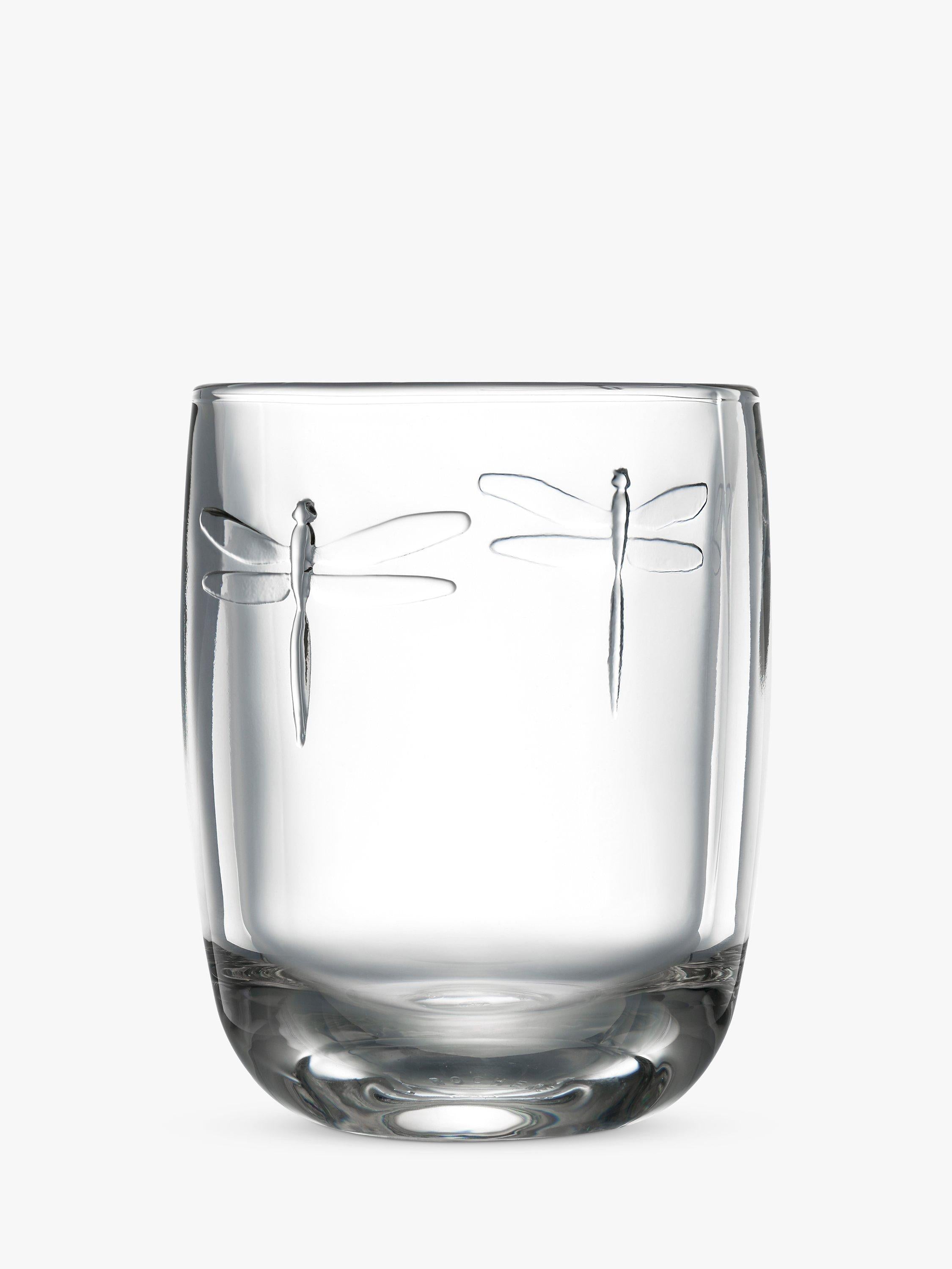 Read MoreA set of six Libellule glass tumblers from La Rochère, for water, lemonade or cocktails. Made of thick rounded glass that's dishwasher safe, Libellule or 'dragonfly' glassware features raised dragonflies on pressed glass. The resilient glass makes this set ideal for outdoor drinks and parties.