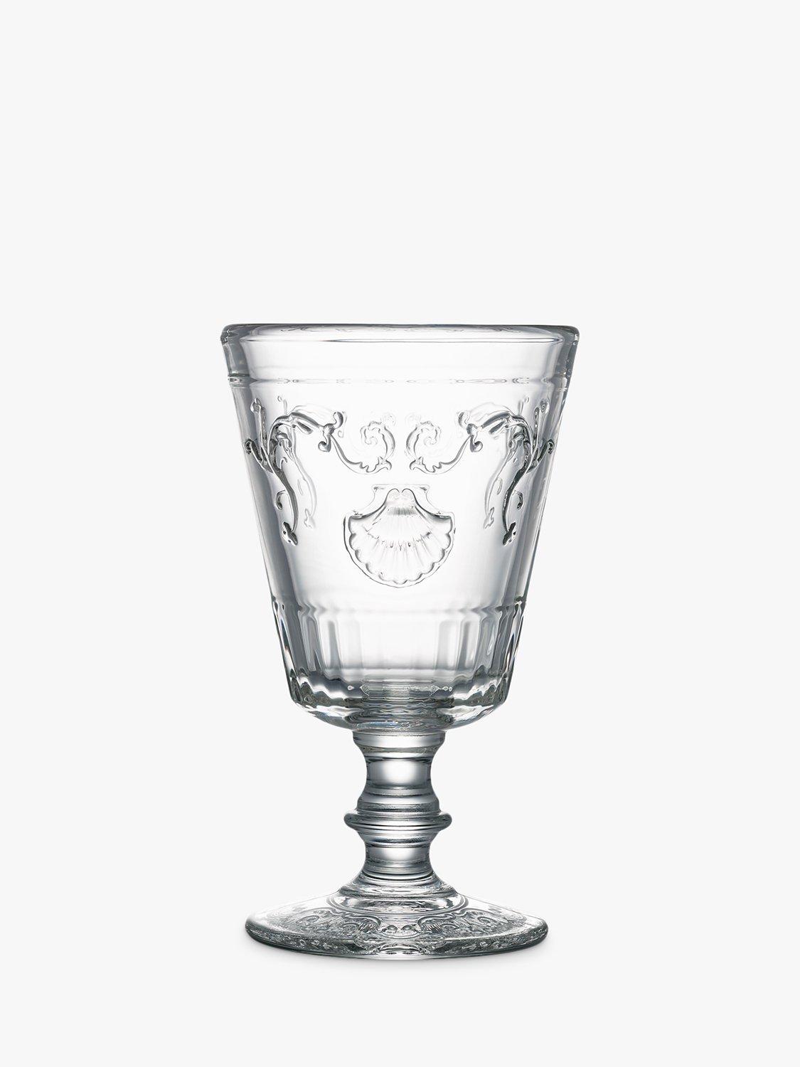 A set of six Versailles wine glasses from La Rochère. The traditional design is made with thick stems and from resilient glass that's dishwasher safe.