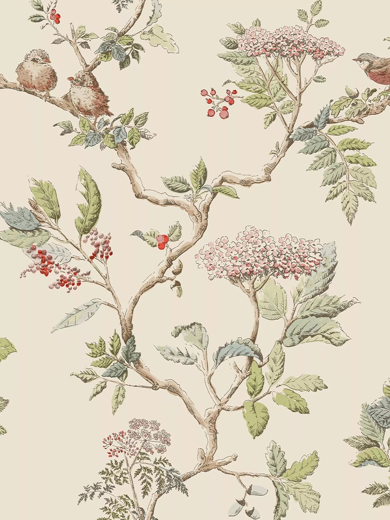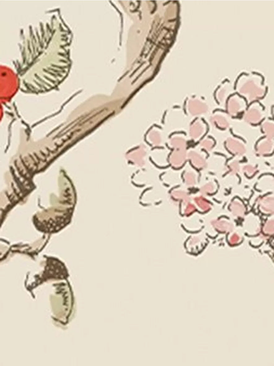 A modern twist to Laura Ashley's heritage Elderwood design. The hand-drawn illustrative blossoms and berries are brought to the foreground with a soft background.
