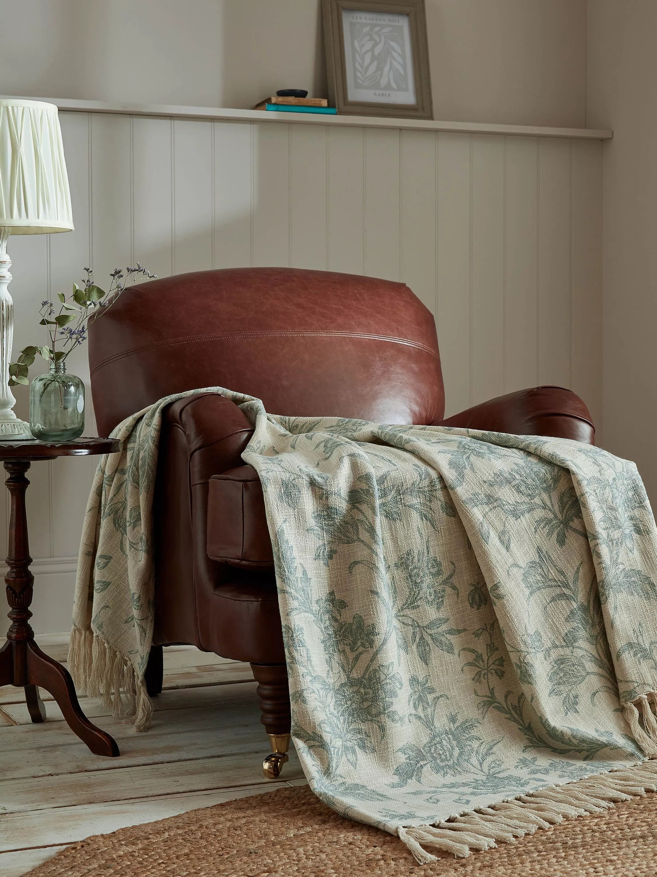 The Lloyd print is an intricate floral trail design with romantically curving floral stems of tulips, primulas and potentillas. Delicately printed onto cotton, with attractive slub detailing, this beautiful cotton throw is a stylish addition to your home.