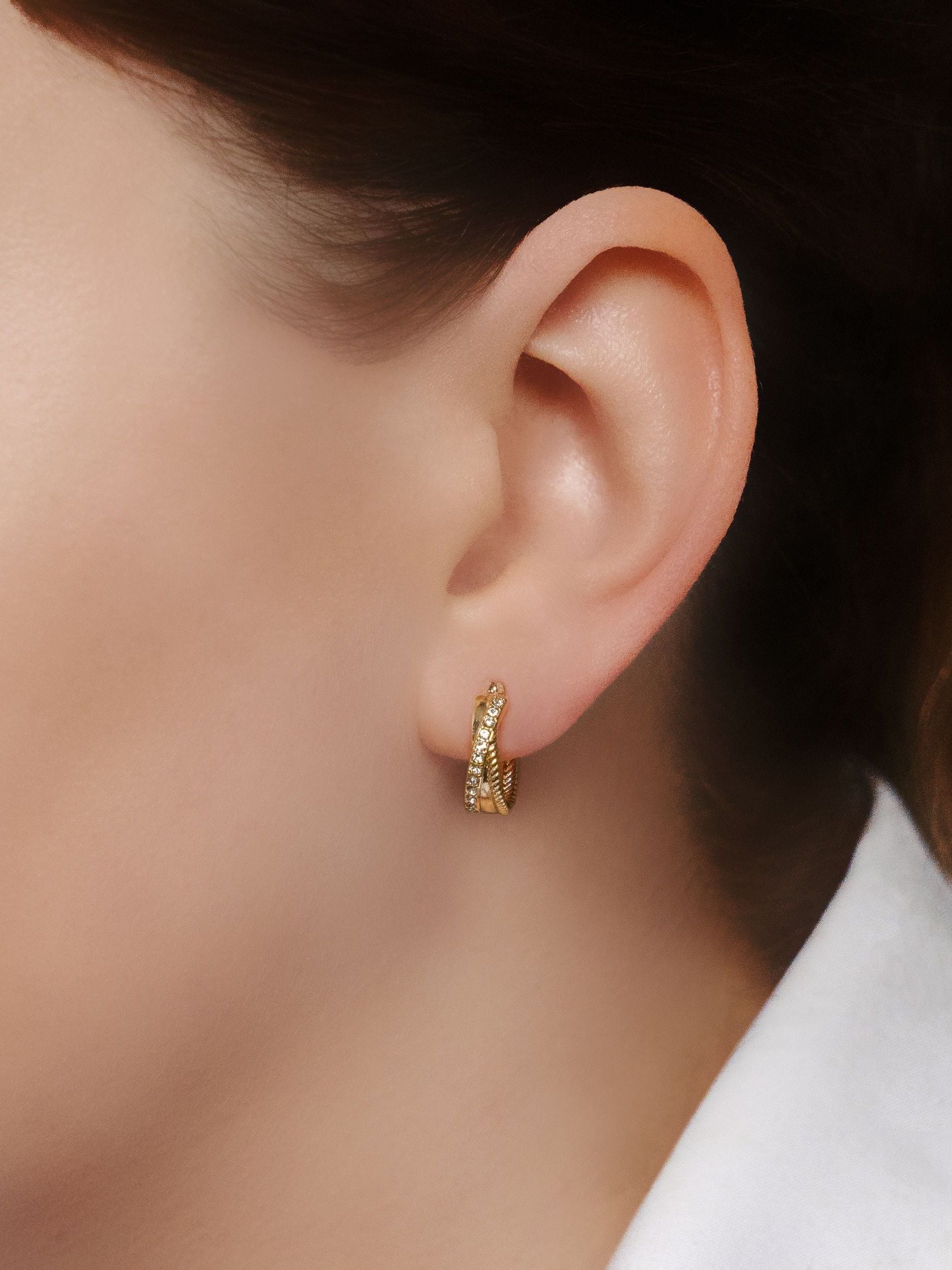 Add a touch of elegance to your jewellery collection with these Lauren Ralph Lauren gold-finish hoop earrings. Designed with a unique twisted silhouette, these hoops feature intricate rope detailing intertwined with shimmering crystals for a refined yet eye-catching look. The classic hinged closure ensures a secure and comfortable fit, making them perfect for day-to-night wear. Whether dressing up or adding sophistication to a casual outfit, these versatile earrings bring timeless glamour to any ensemble.