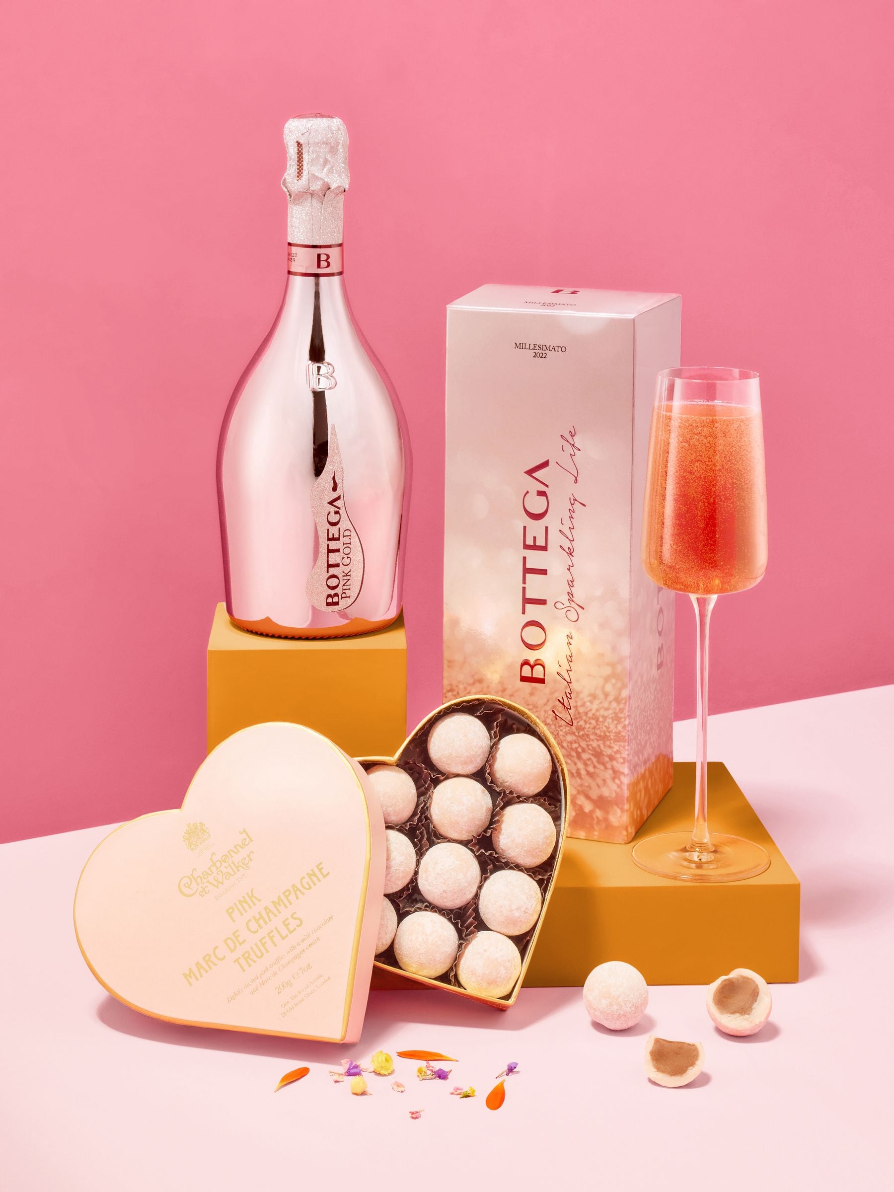 Bottega's Pink Gold Prosecco is a stunning addition to their lineup, with a beautiful bright pink colour and delicate floral aromas. The citrus notes of pear and white peach add a refreshing balance, making this Prosecco perfect for any celebration. Handpicked Glera and Pinot Noir grapes from Italy's Prosecco region ensure a high-quality product that is crafted with artisanal care and attention. The metallic pink finish and glitter label and cap add a touch of glamour and fun to any occasion. Volume 750ml, ABV 11.5%.