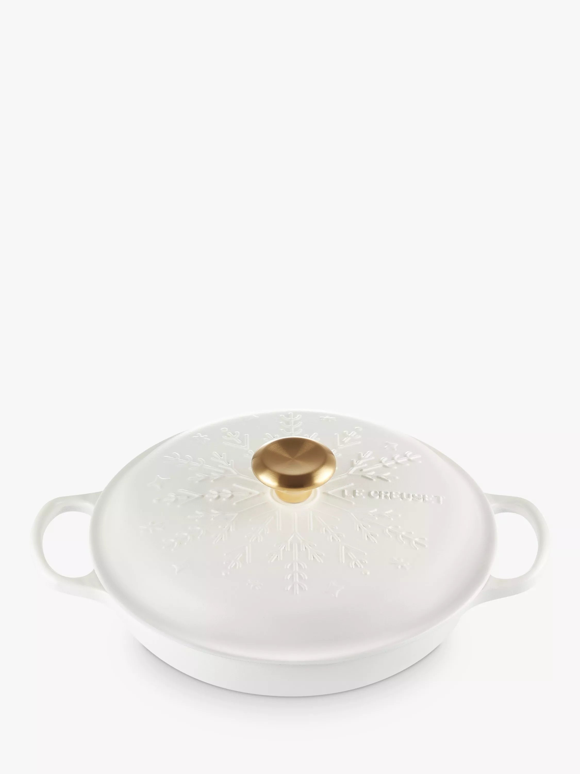 Le Creuset's multipurpose Signature Cast Iron Shallow Casserole in a festive Snowflake pattern. Loved by generations, the shallow casserole is a true 4-in-1 dish: it's a great casserole, stir-fry pan, baking and roasting dish and it’s also a striking serving dish.
