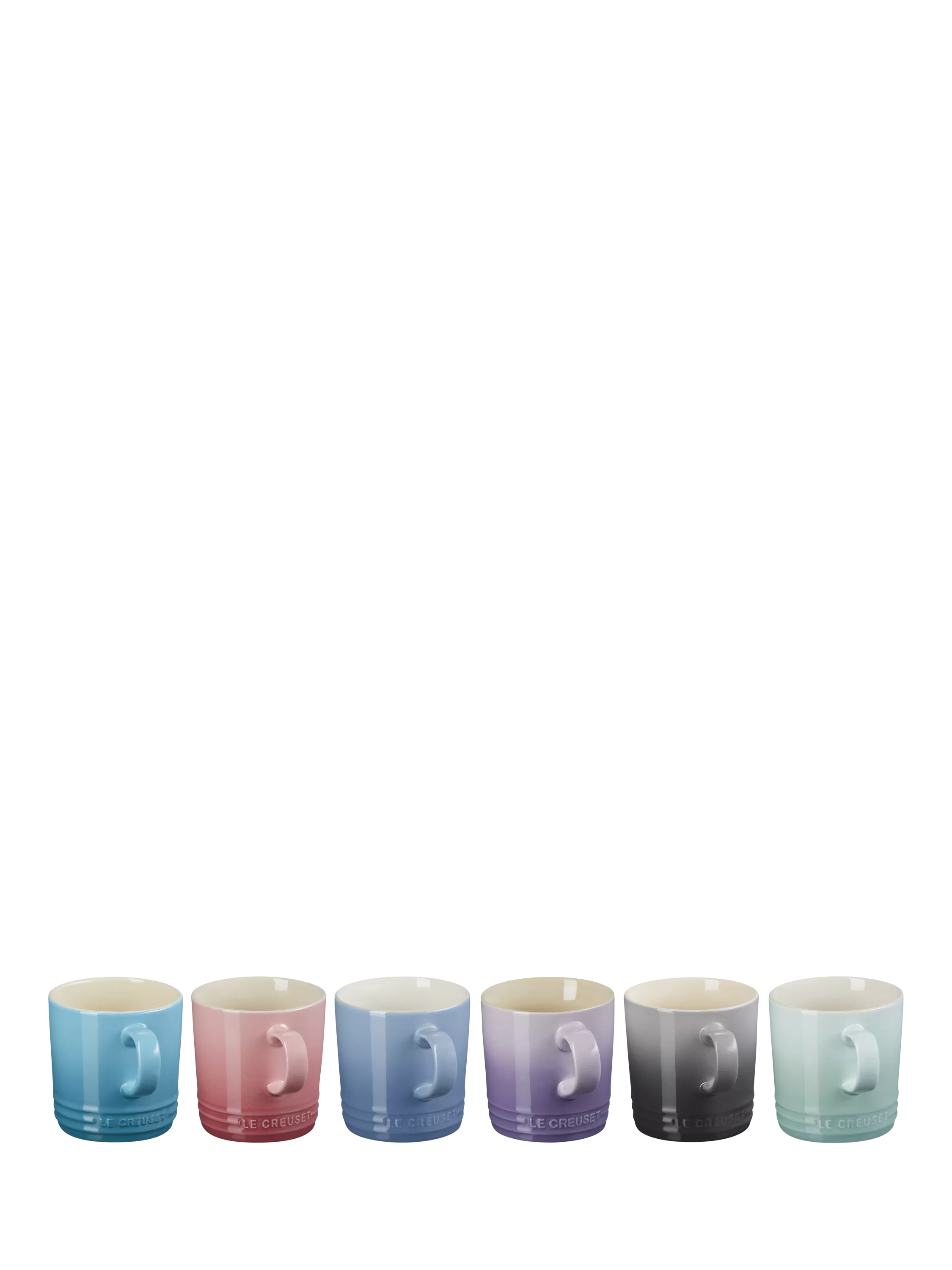 Six mugs crafted from famous Le Creuset stoneware for a robust and high-quality finish. Presented in a stylish gift box, this rainbow set makes an ideal present or a treat for yourself.