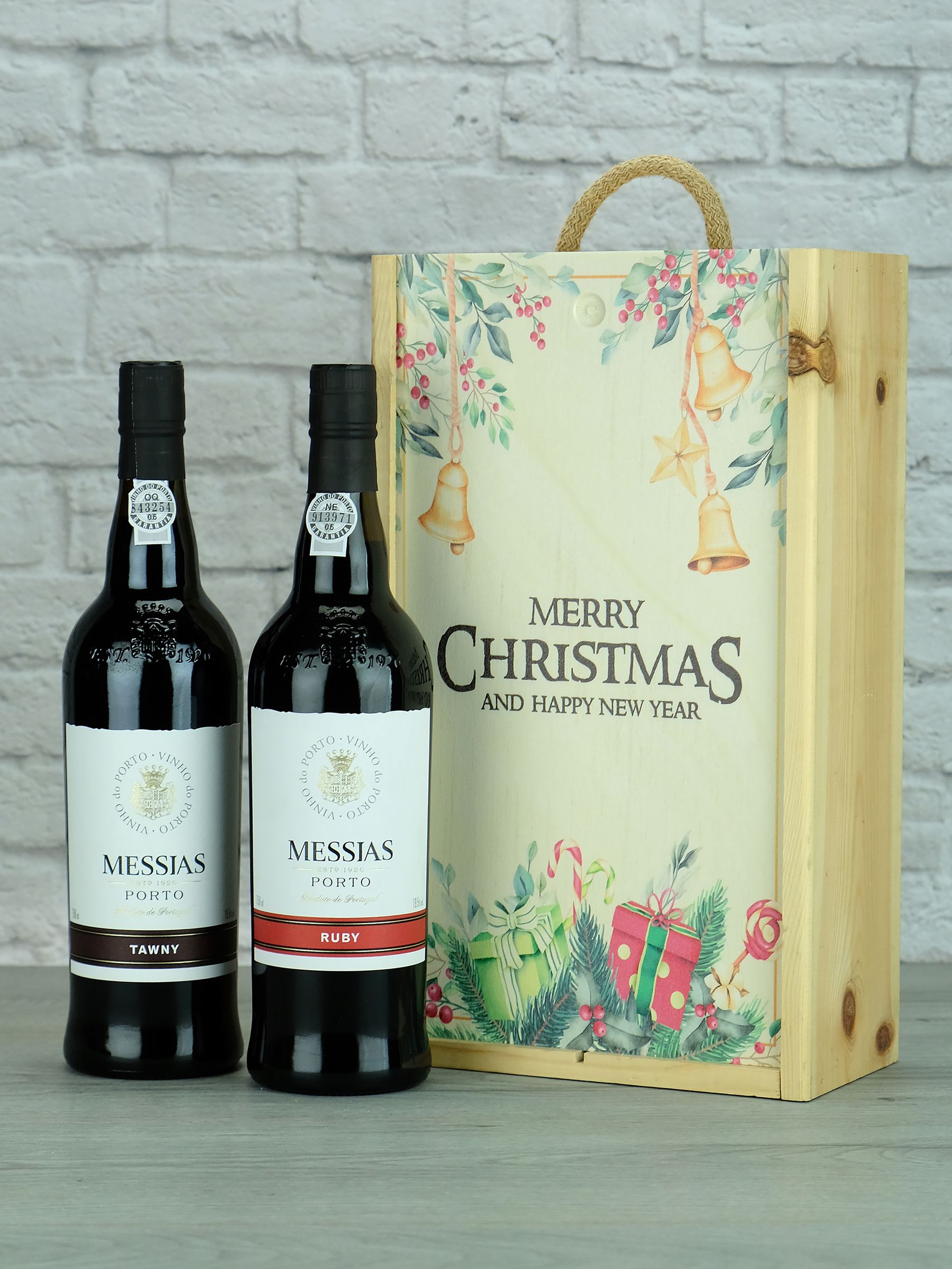 Wish a loved one Merry Christmas with this Port duo gift from Messias. Featuring a bottle of fruity Ruby and smooth Tawny port presented in a Christmas-themed wooden gift box. 2x 750ml Bottles. ABV 19.5%.