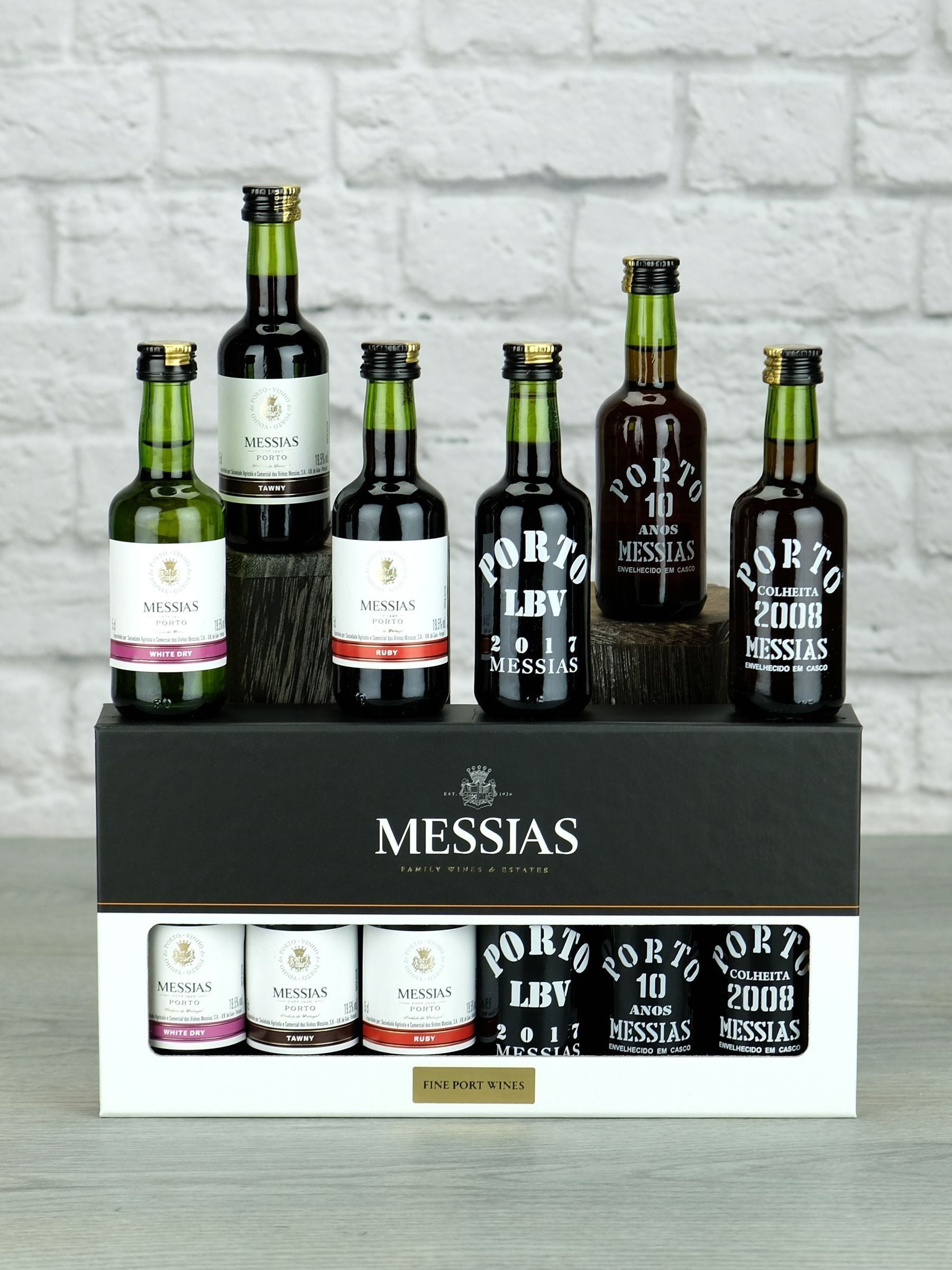 By exploring these fine Port Miniatures, you ll delve into a slice of Port Wine s rich history and discover the unique identity of a family. This set of 6 miniature Ports shows a broad range of the Port s offered by Messias including Ruby, Tawny, White, Colheita and LBV. Contents: Messias Ruby Port 50ml - 19.5% ABV / Messias Tawny Port 50ml - 19.5% ABV / Messias White Port 50ml - 19.5% ABV / Messias LBV Port 50ml - 20.0% ABV / Messias 10yr Port 50ml - 20.0% ABV / Messias Colheita Port 50ml - 20.0% ABV. If any wines are unavailable a suitable replacement will be substituted.
