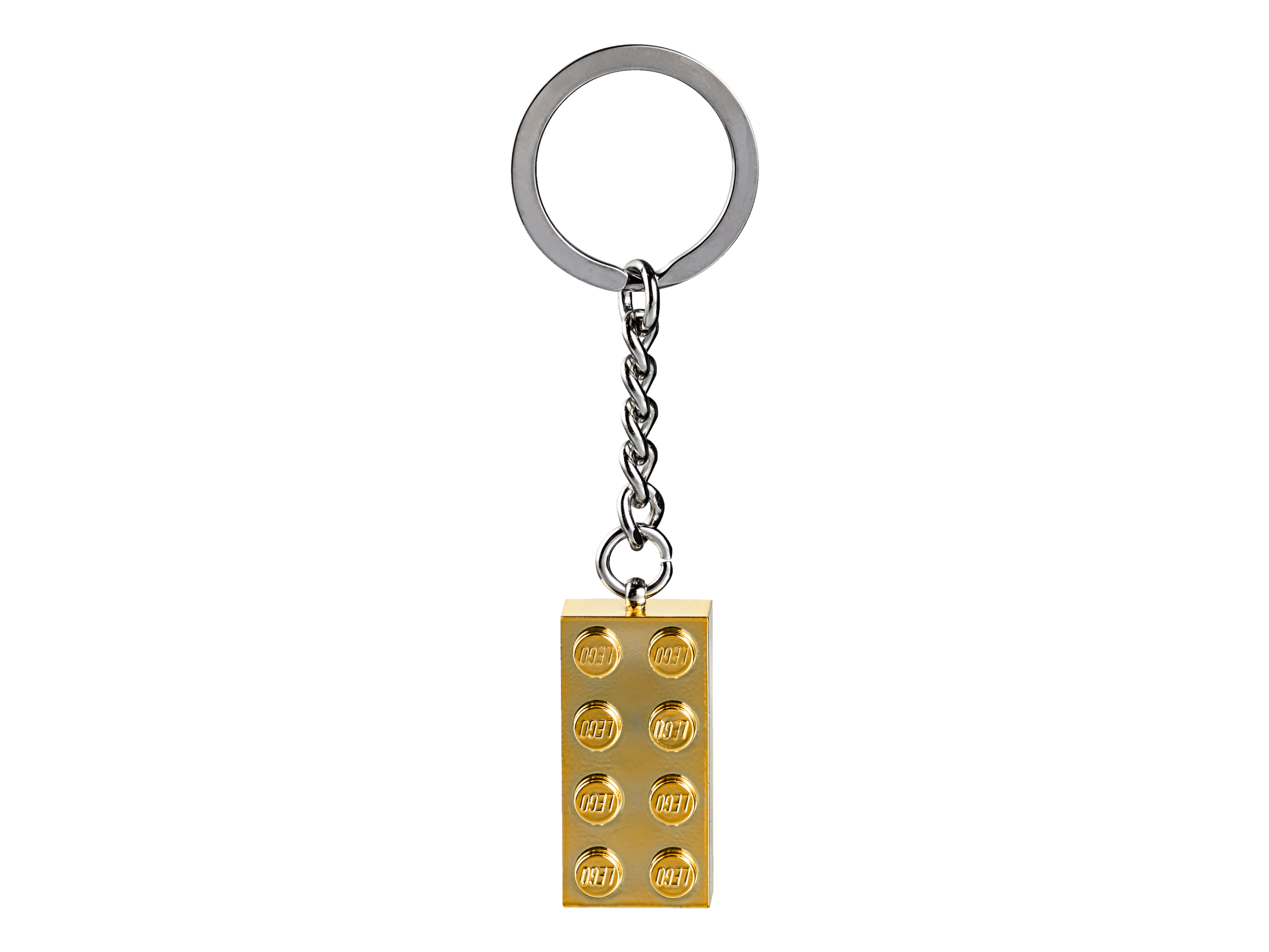 Now you can own your very own LEGO® gold brick, a fan-favorite element! This fun and colorful keyring features an authentic gold-laminated 2x4 LEGO brick attached to a sturdy metal ring and chain. Makes a great backpack charm!
