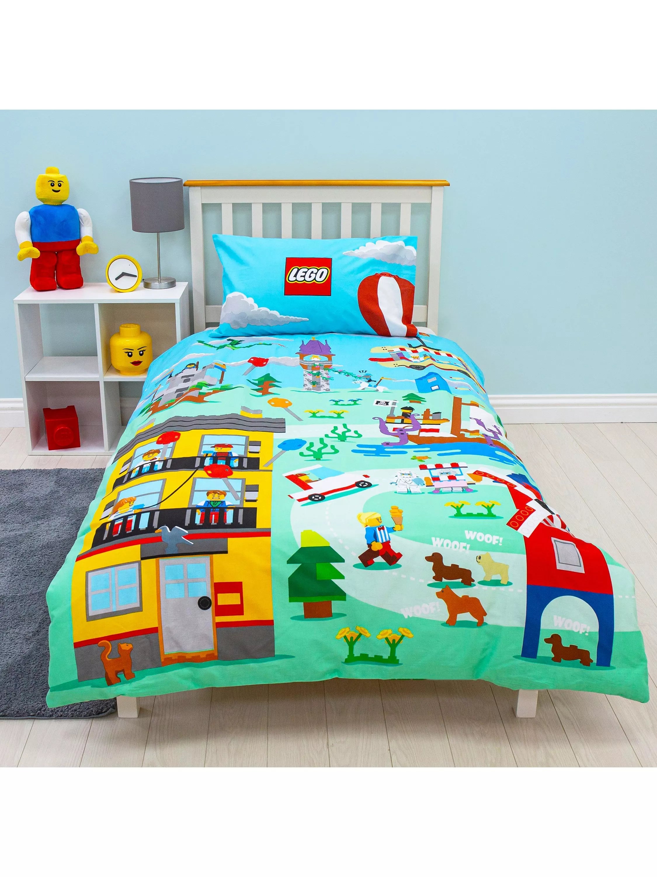 Build the perfect bedroom for any Lego fan with this exclusive Lego classic scene single duvet set. Featuring a vibrant, colourful scene on the front and a pattern of classic lego icons on the reverse, this duvet is sure to delight your little one. Made from soft cotton, the duvet cover and pillowcase are soft and breathable against their skin for a great night's sleep.