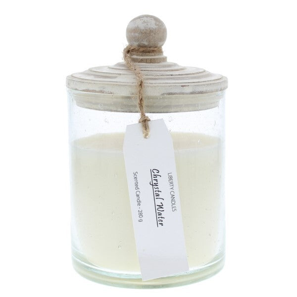 the chrystal water candle from liberty candle is a brilliant soy wax candle from one of the kings of scented candle scene as with all liberty candles this comes with a luxurious and high quality scent and is housed in a very nice classic styled jar