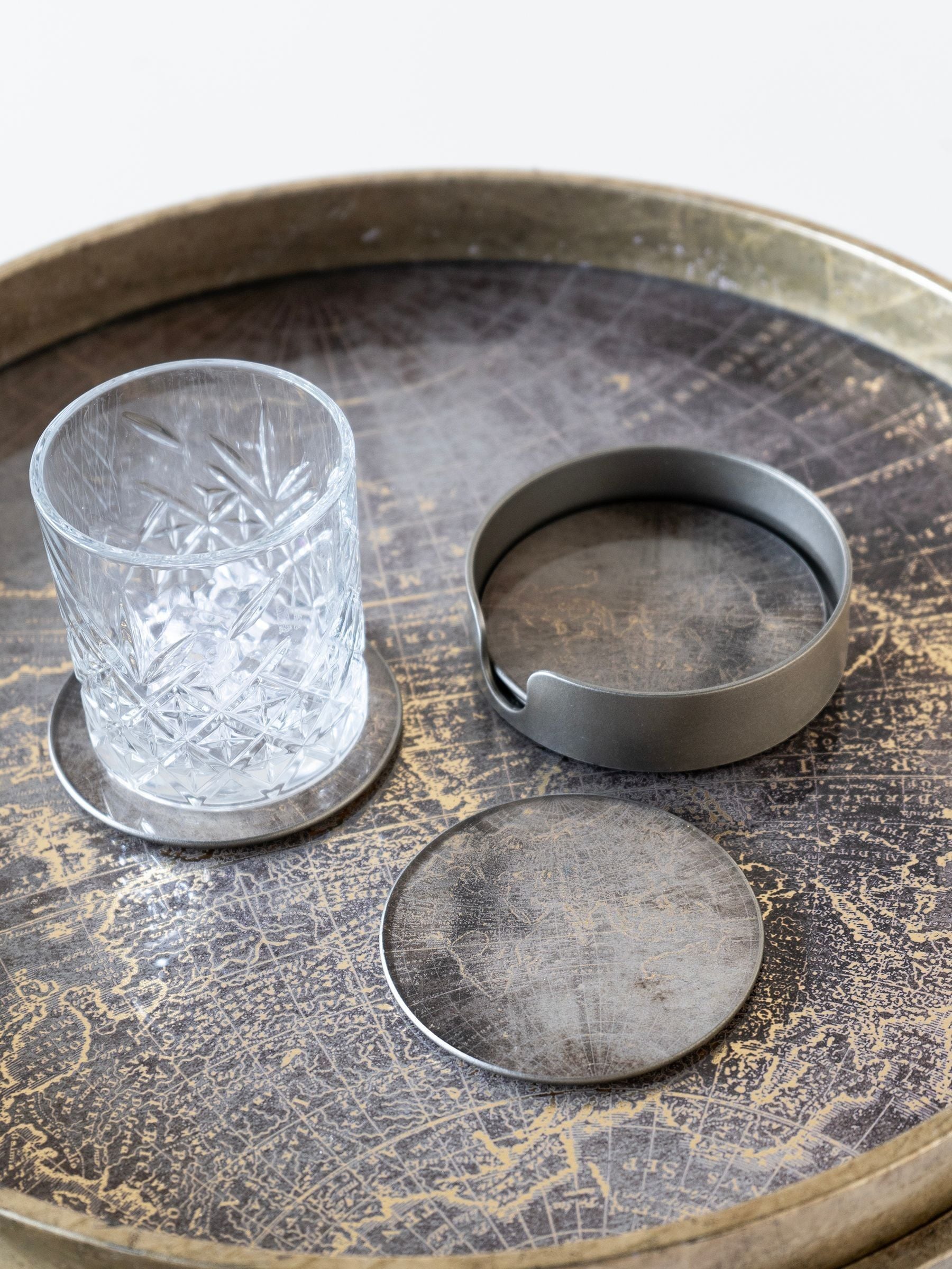 Showcasing an antique atlas design, these hand-finished glass coasters are infused with a sense of old-school adventure. Featuring a soft gold rim with delicate gold detailing and a cork base, this sophisticated set of four will make the perfect finishing touch for a coffee or dining table. Due to the artisan nature of these pieces, there may be variations between finishes.