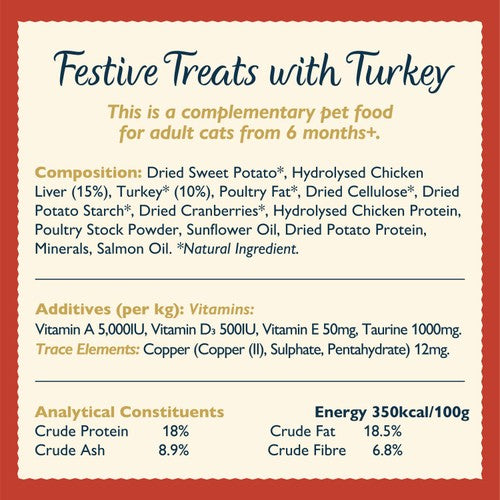 Make your feline friend feel celebrated during the festive season with these special Christmas turkey treats from Lily's Kitchen. These snacks are formulated using natural ingredients, ensuring a quality reward for your pet. They offer a delightful dual texture that appeals to many cats.