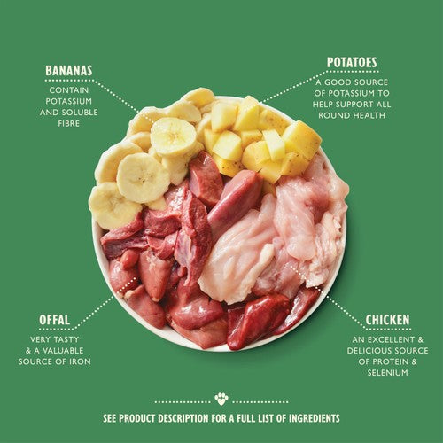 Our nutritionally complete recovery meal is a grain-free recipe made of a soothing combination of ingredients, including freshly prepared chicken, banana and potato, as well as prebiotics FOS and MOS to help support the digestive system.