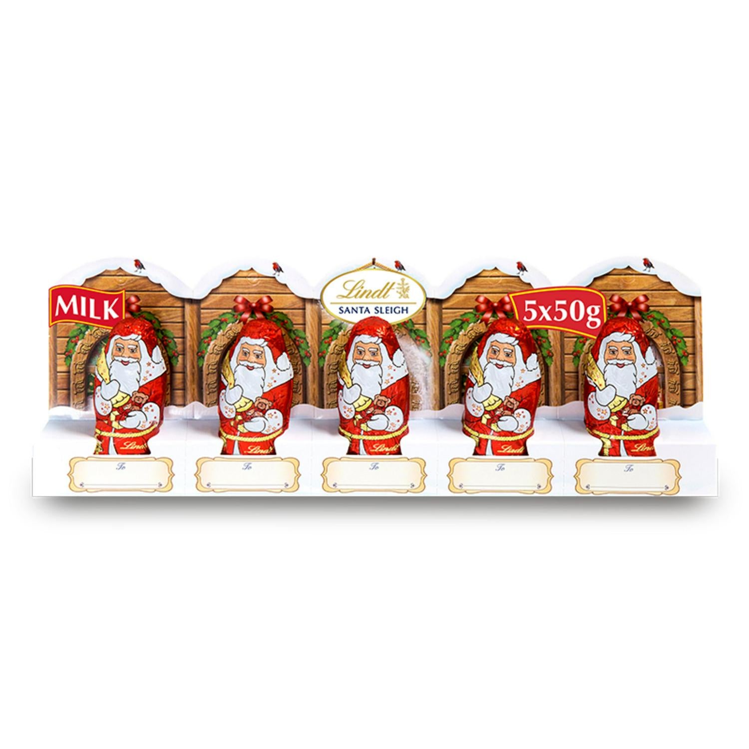 5 individually wrapped mini SANTAS made with the finest smooth milk chocolate The perfect festive treat
