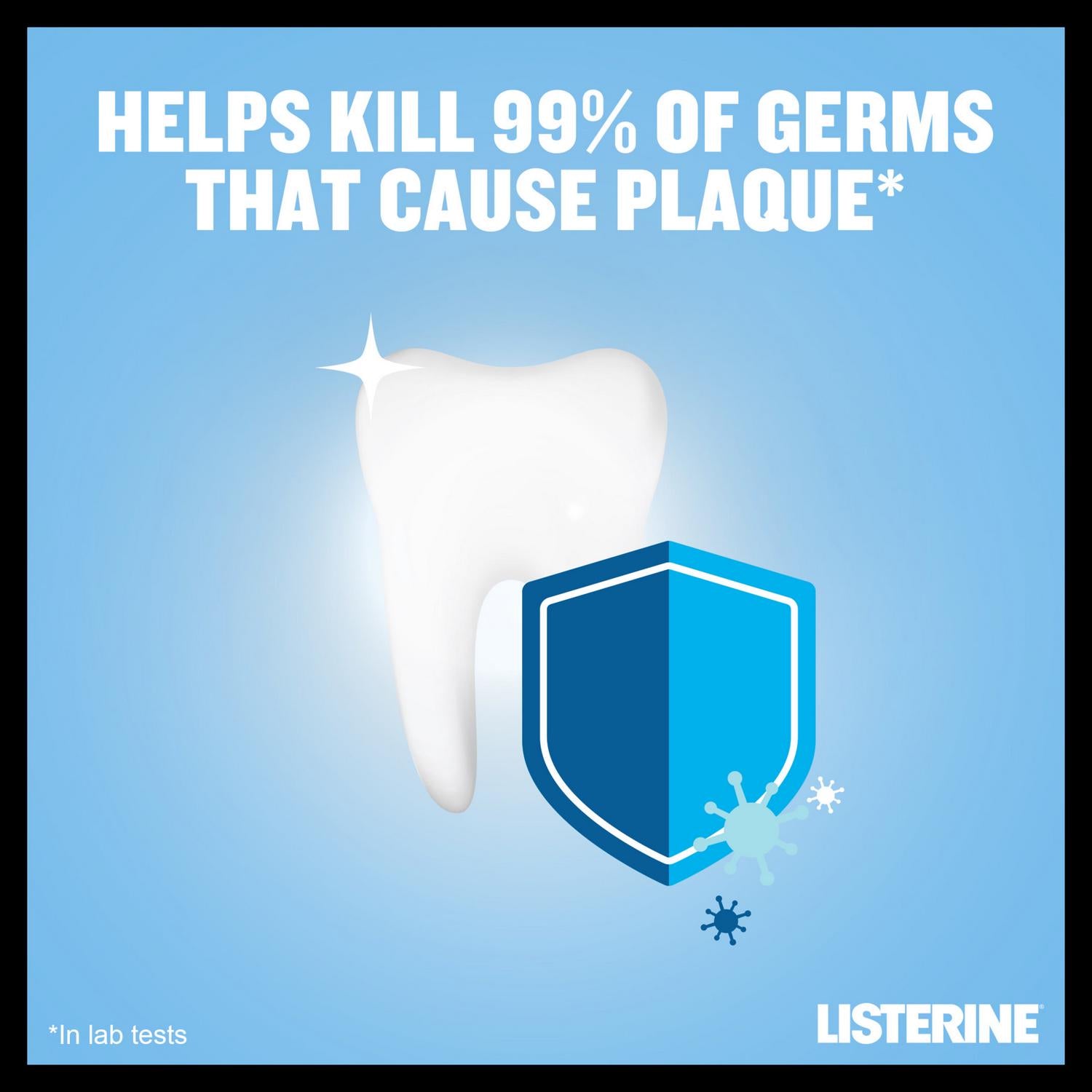 - Powerful Essential Oils kill 99% of germs that cause plaque**.