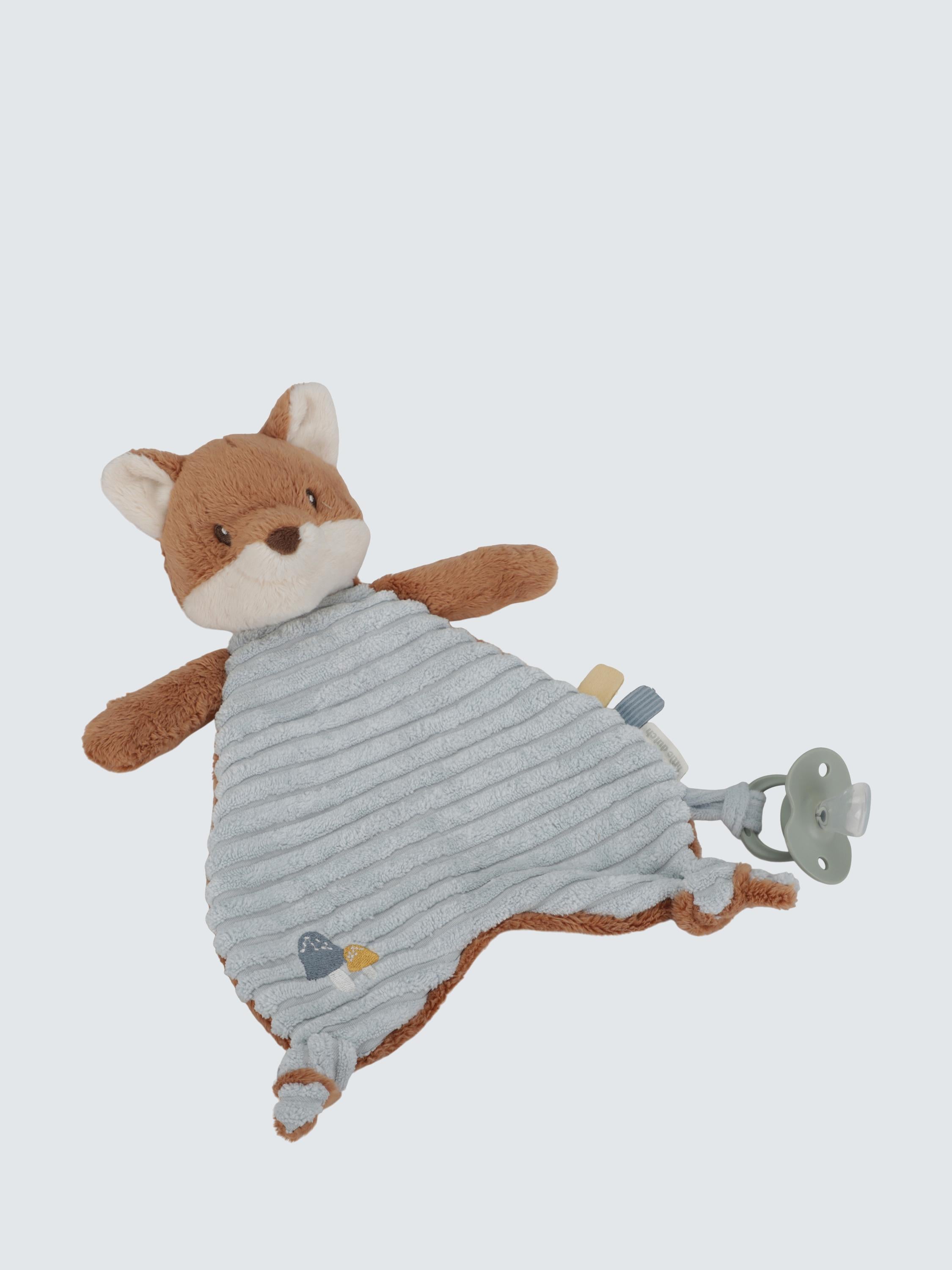 The friendly fox will soothe you with its magical softness, offering a comforting embrace whenever you need a buddy by your side. The soft cloth of its body features delightful details including playful labels, a Forest Friends embroidery, and two knots for tiny hands to grasp and hold onto. With the convenient loop, it's easy to attach a pacifier to keep it close.