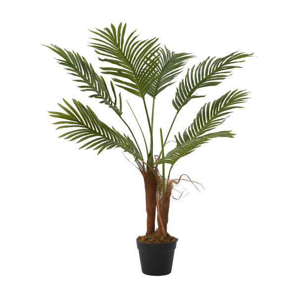 durable premium material crafted with peva leaves to retain their vibrant colour and shape over time ensuring lasting beauty realistic appearance the twopronged design creates a fuller more symmetrical appearance enhancing the natural appeal of the tree customisable shape its bendable ironwiresupported branches allow you to shape and adjust the tree to your desired form versatile styling whether displayed in a corner or as part of a larger arrangement it adds dimension and depth to your home or office dcor specifications overall dimensions 80cmw x 90cmh pot dimensions 16cmdia x 12cmdia x 13cmh product type artificial plant plant material peva plastic pot material plasticcement colour greenbrown pot colour black pattern tropical palm tree indooroutdoor indoor assembly required no package content 1 x artificial plant
