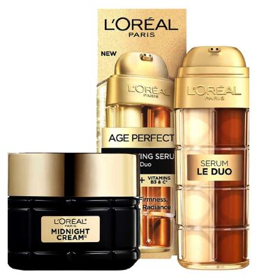 This L'Oréal Paris set provides a comprehensive approach to age-defying skincare with two complementary products. The duo features the Midnight Cream and the Revitalizing Serum Duo, designed to work together overnight and throughout the day. Experience the benefits of advanced formulations targeting key signs of ageing for visible results.