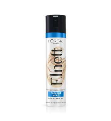 Read MoreL’Oréal Paris Elnett UK's No.1 Hairspray*. Styling women for generations, the gold can has always been at the heart of great style. Achieve your desired hairstyle with Elnett Flexible Hold Hairspray. The iconic micro diffuser hairspray sets your everyday style easily for up to 24h of undetectable hold**. Our new formula is enriched with Vitamin B5*** to protect hair from frizz and external aggressions. This iconic hairspray enhances natural hair movement and shine, without leaving it feeling stiff or sticky, and disappears at the stroke of a brush. *Source ©2023 NielsenIQ value sales, Styling, Hairspray category (client defined), 52 w/e 30/12/2023 in United Kingdom (GB+NI) Total Coverage **Instrumental test. ***Provitamin B5.
