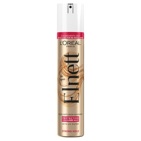 loral paris elnett for coloured hair uks no1 hairspray for up to 72hour strong hold this hairspray provides natural hair movement and shine this uv filtered formula coloured hair provides radiance and protects from frizz shake the can and spray from about 30 cm away from the hair disappears at the stroke of a brush