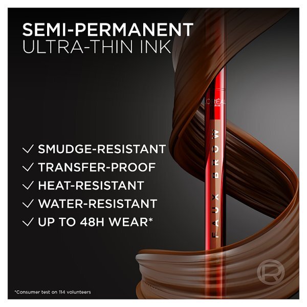 Read MoreFaux brows have never looked so real. Introducing the NEW L’Oréal Paris Infallible Faux Brow, a brow tint pen that visibly doubles your brow hairs. Crafted with next-generation technology, it features a 0.01mm double-brush tip that perfectly mimics real brow hair. The results? Ultra-precise and seamless application for hair-like strokes that last for up to 2 days*. Transfer-proof, smudge-resistant, heat-resistant and water-resistant. *Consumer test on 114 volunteers