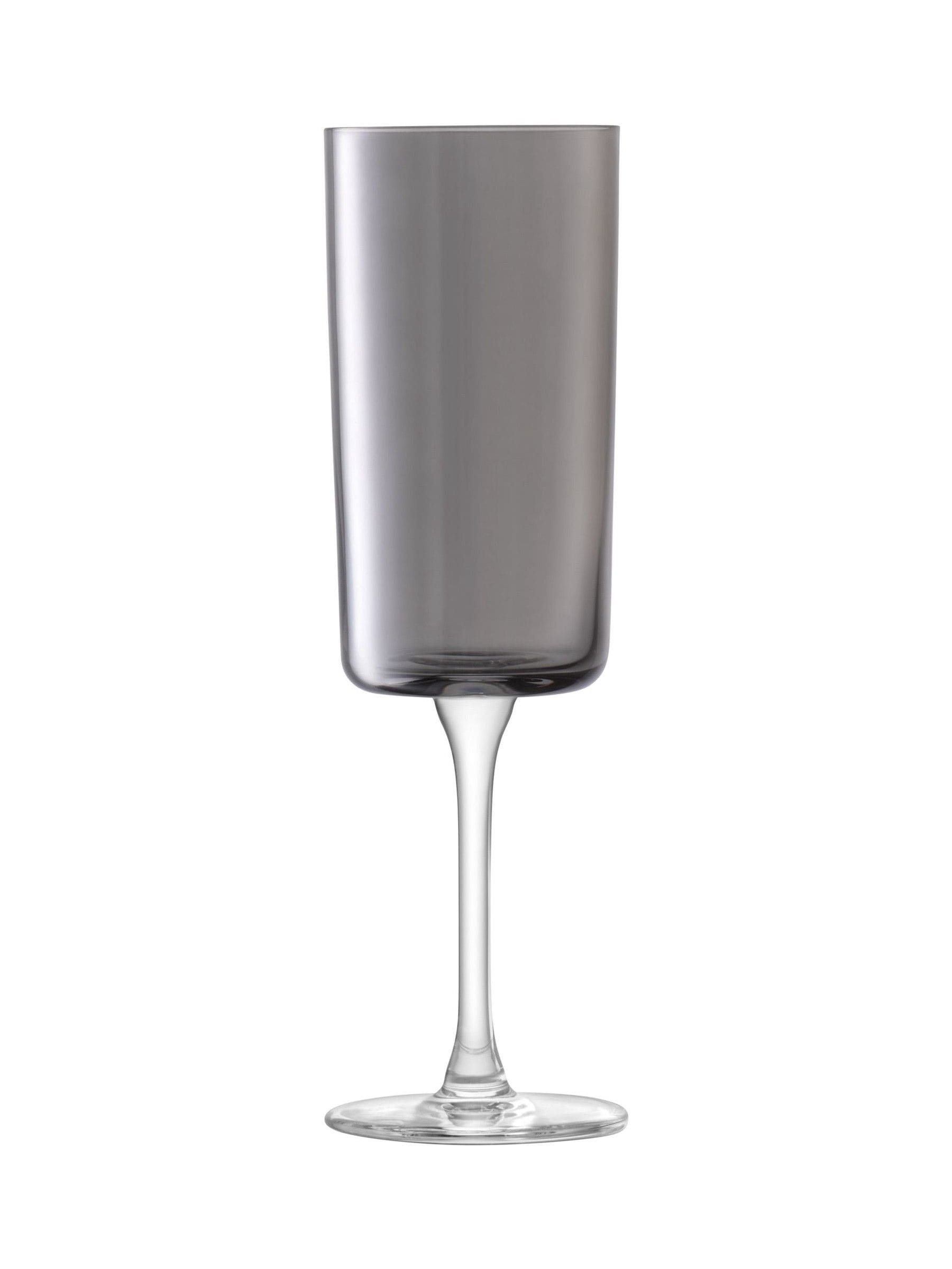 Set of two champagne flutes with angular bowls, hand painted with a reflective grey lustre. Size: ONE.