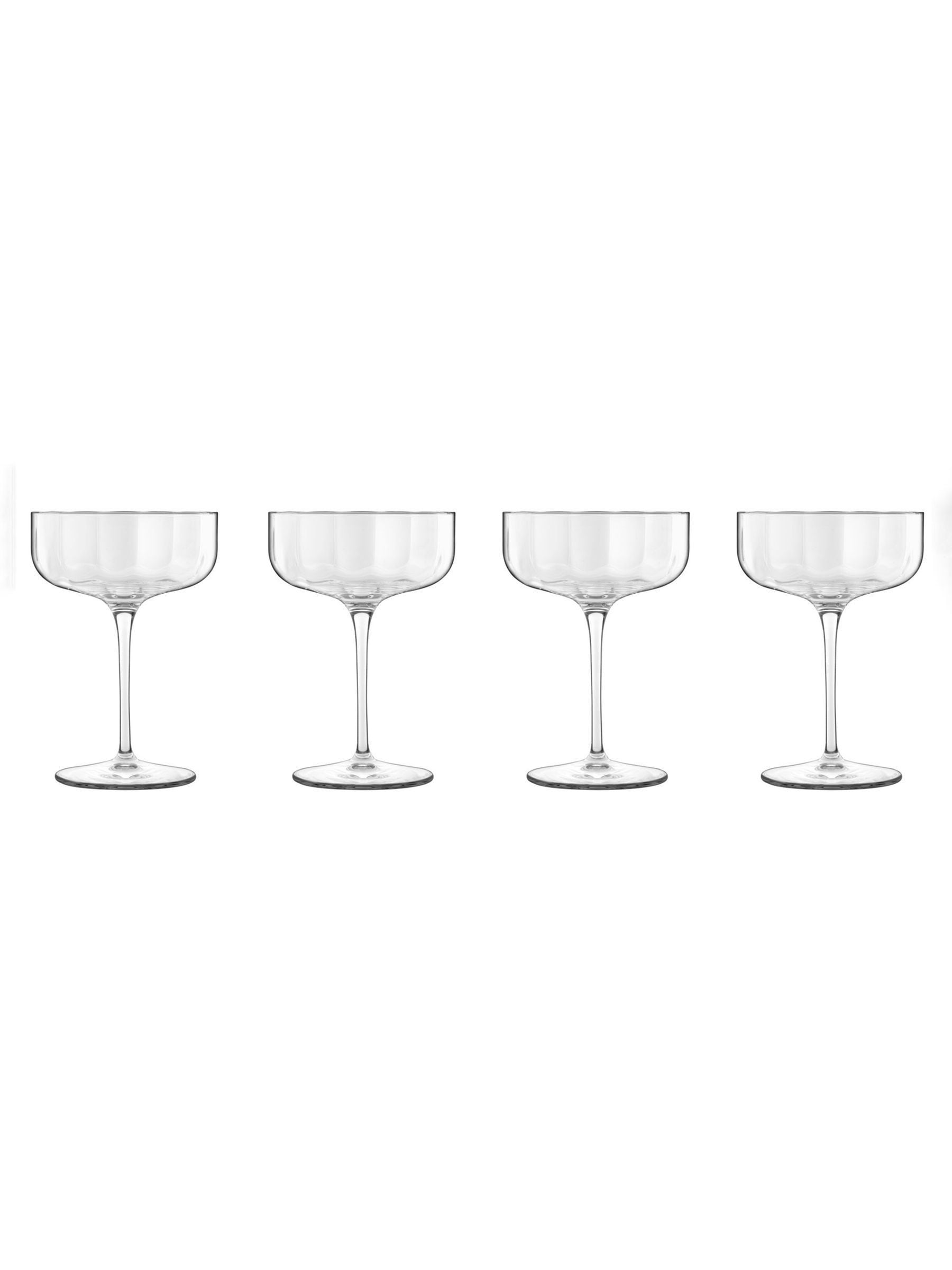 Luigi Bormioli Set of 4 Coupe Glasses - 300ml x 4 JAZZ GLASSWARE from Luigi Bormioli features an elegant faceted design for the new Golden Age of cocktail making. MADE IN ITALY with SON.hyx glass technology for strength, clarity, and brilliance: This high-tech crystal glass is made with extra properties to be even stronger, with better clarity. LONG LASTING: SON.hyx is more resistant to attrition from dishwashers than ordinary Crystal Glass and even Sparkx. EASY CLEAN: These four Negroni cocktail glasses are dishwasher safe and keep their sparkle. STUNNING DESIGN: They’re made with Titanium-reinforced stems to increase resistance to breakages.