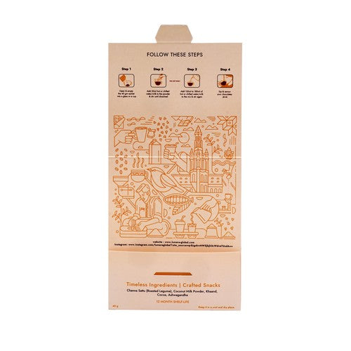 Lumara Cocoa Karma offers a comforting, rich chocolate experience inspired by childhood indulgence. This unique preparation blends the earthy depth of roasted legume sattu with velvety cocoa flavouring. It provides a wholesome twist on traditional hot chocolate, delivering pure, chocolatey joy in every serving.
