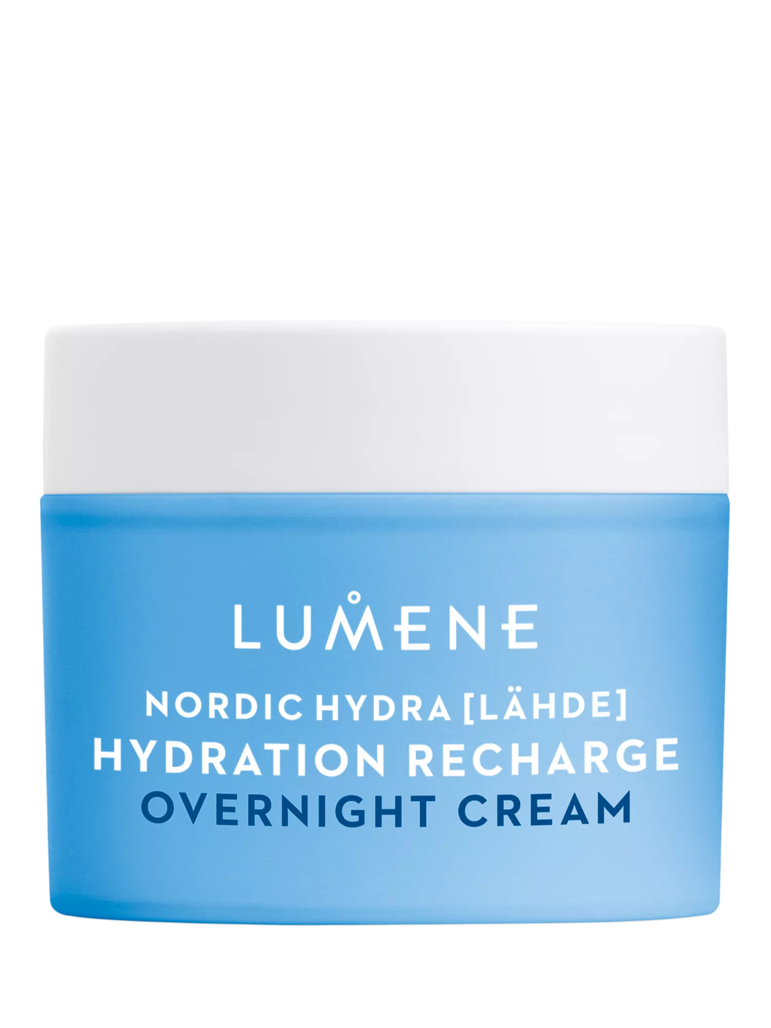 Revitalize your skin overnight with Lumene Nordic Hydra [Lähde] Overnight Cream, a luxurious vegan moisturizer featuring replenishing Nordic ingredients.