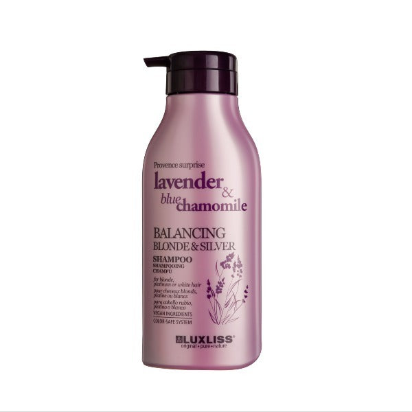Read MoreProduct Information lavender blue chamomile balancing blonde silver hair care shampoo for blonde platinum or white hair vegan ingredients colour safe system original pure nature moisturises the scalp and leaves fragrance nourish damaged hair paraben free especially for blondesilver hair this shampoo and conditioner is based on violet color which can wash away unwanted orange yellow and brass colors of the tangled hair restore the beautiful shine of your hair and make it maintain the blonde slivergraybluegreen color after bleaching