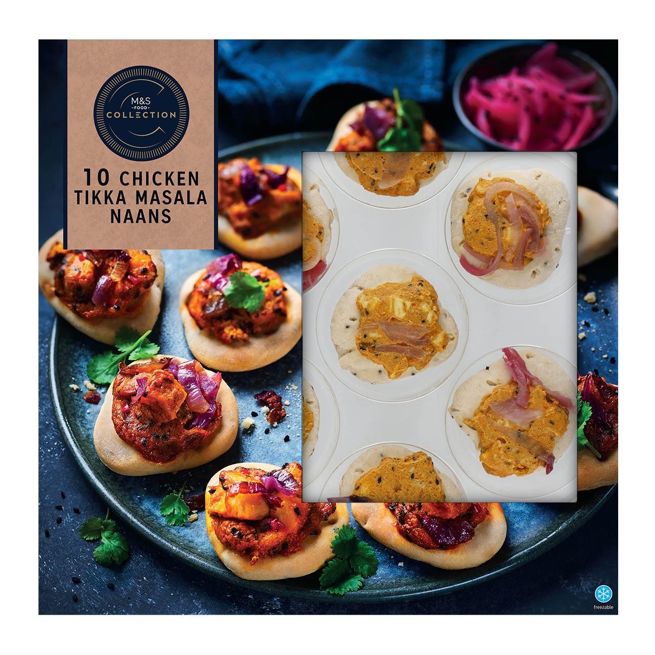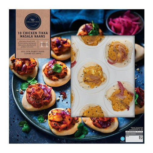 Enjoy the rich flavours of India with these M&S Collection Chicken Tikka Masala Naans. This convenient pack contains ten small naan breads filled with tender British chicken in a fragrant tikka spice sauce. They are finished with a slight tang from pickled red onion for balanced taste.