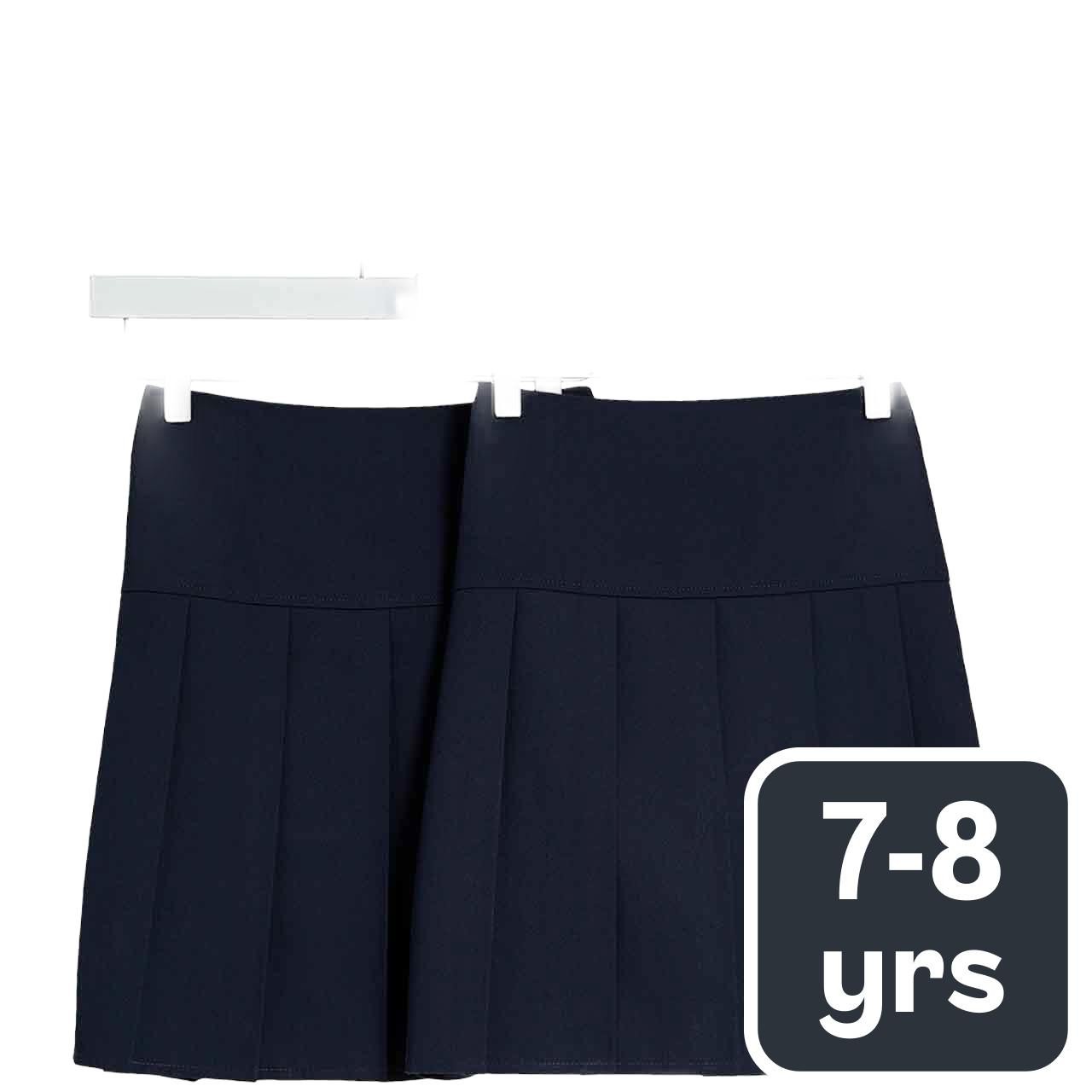 This value two-pack of navy school skirts is an excellent addition to your child's required uniform. They are tailored in M&S' classic regular fit for comfort throughout the school day. These essential garments feature smart, permanent pleats that maintain their shape wash after wash.