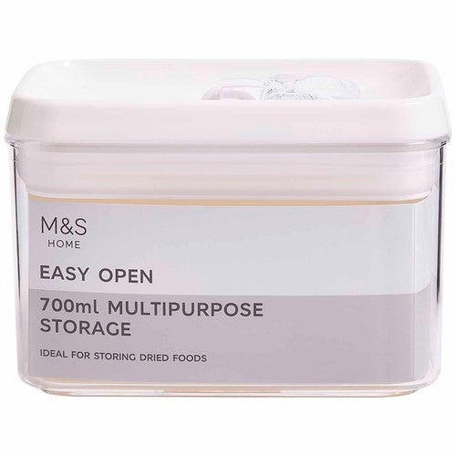 This M&S 700ml storage container is designed to help keep your dried ingredients fresh within your pantry or cupboard space. Its 700ml capacity is suitable for storing common staples like pasta, rice, or grains effectively. The container features a clean white aesthetic that integrates well into various kitchen environments.