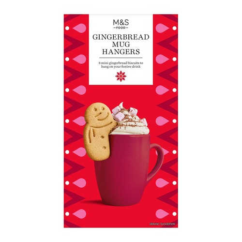 Add a charming, edible touch to your favourite warm drinks with these M&S Gingerbread Mug Hangers. This pack contains eight mini gingerbread biscuits specifically crafted to sit neatly over the rim of your mug. They offer a delightful visual enhancement and an accompanying sweet treat for your seasonal beverages.