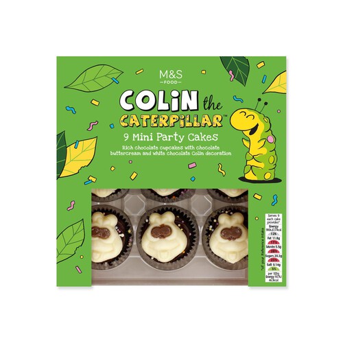 These M&S Mini Colin the Caterpillar Party Cakes offer a delightful treat perfect for any celebration or gathering. Each pack contains nine individual rich chocolate cupcakes, ready to serve your guests. They capture the iconic look of Colin in a convenient, smaller format that is easy to manage during parties.