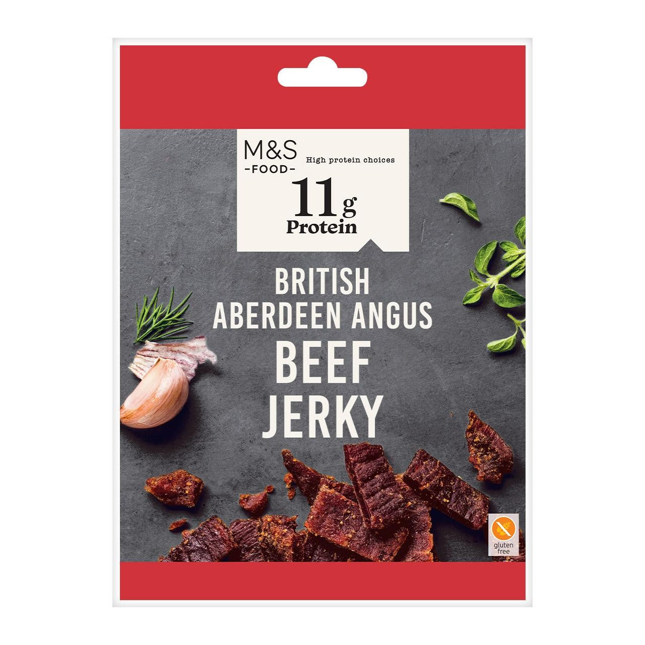 M&S offers premium Aberdeen Angus Beef Jerky, crafted from quality cuts of British cattle. These savoury pieces are carefully marinated before being smoked gently over fragrant apple wood chips. This snack option is noted for its nutritional profile, making it a convenient protein source for any time of day.
