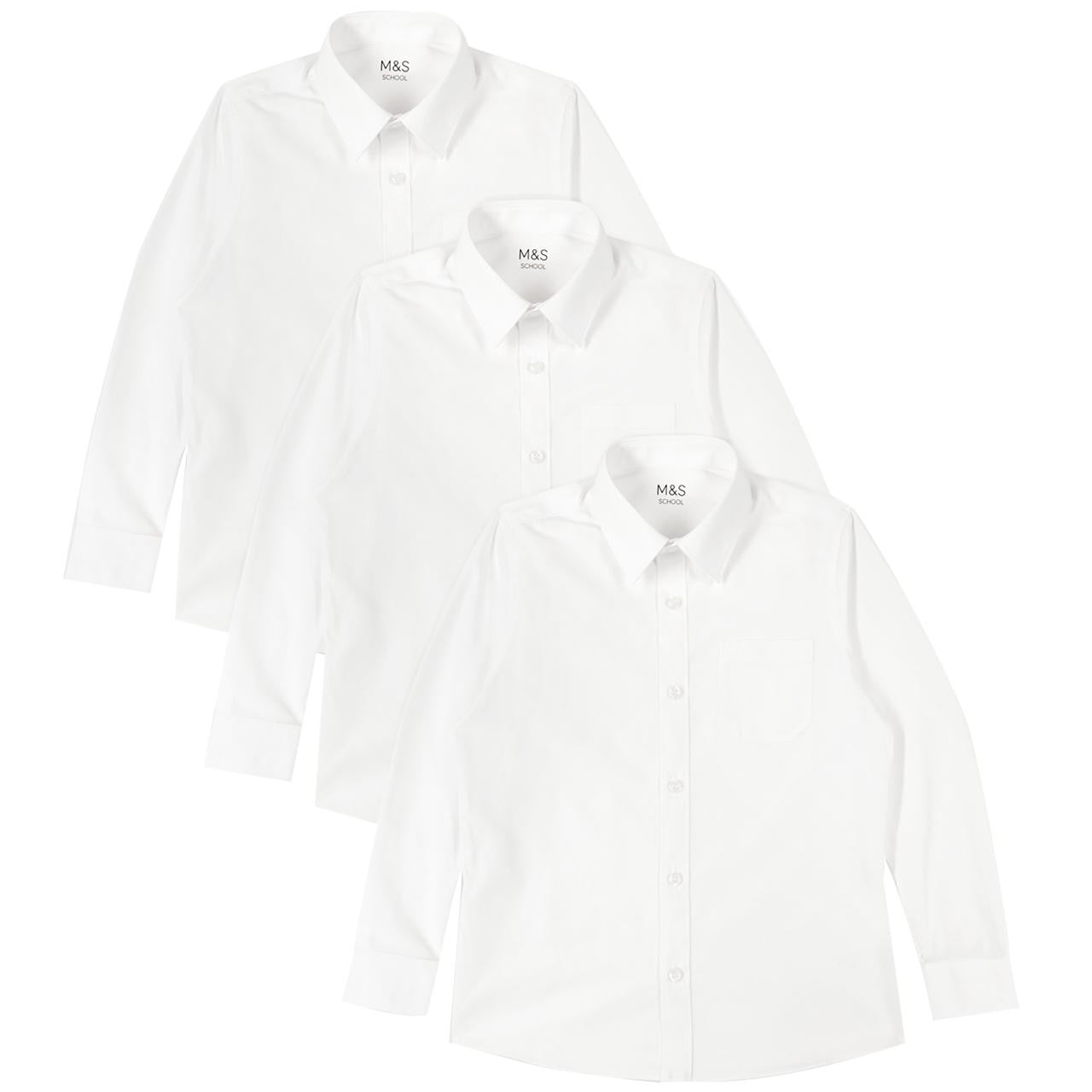 This M&S regular fit long sleeve school shirt offers essential durability and comfort for the school week. Made from a crisp cotton mix, it is designed to sit well on the body while providing ample room for movement throughout the day.