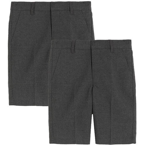Prepare them for the classroom with this convenient pack of two boys' school shorts. They are tailored with a modern slim fit, featuring a cut that is narrower through the leg and body for a neat appearance. M&S has incorporated thoughtful features to ensure comfort and longevity throughout the school year.