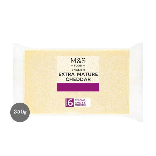 This M&S English Extra Mature Cheddar provides a robust and satisfyingly complex flavour profile for cheese enthusiasts. It is carefully crafted at an award-winning creamery situated in the heart of the West Country region. This 350g block is specifically aged to develop its signature strong and tangy characteristics, making it a distinguished choice for any occasion.